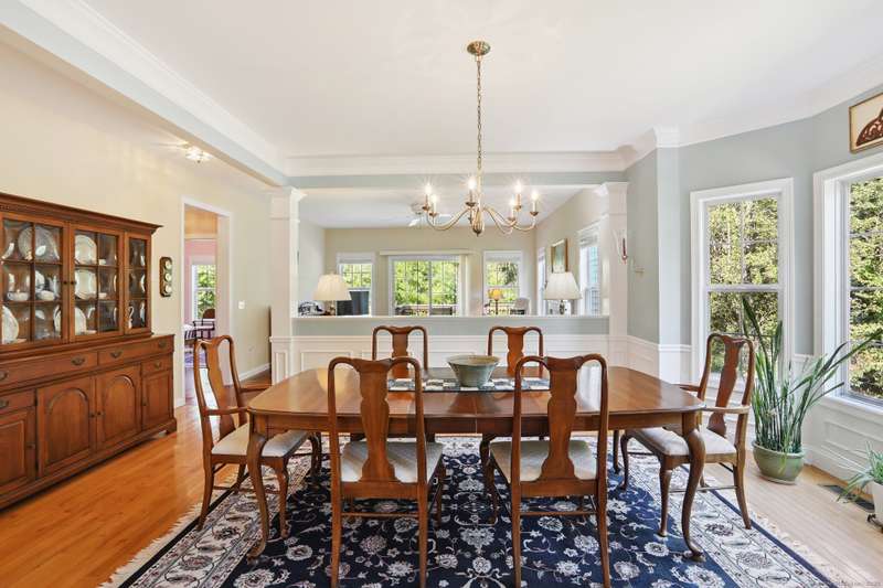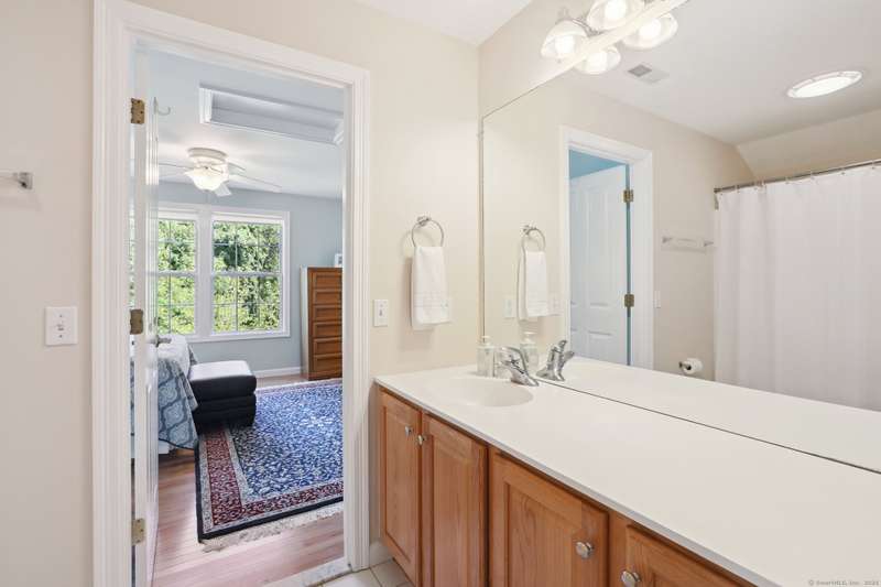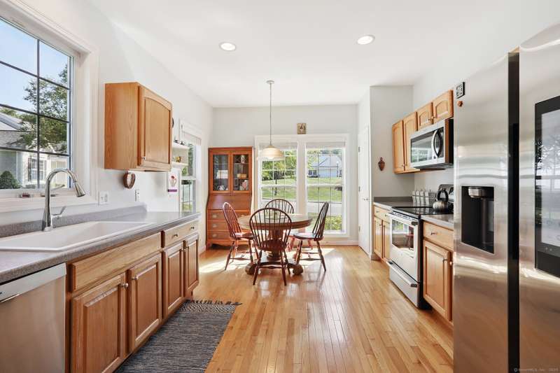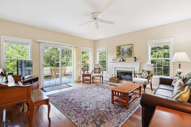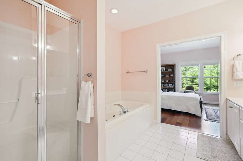 Discover the perfect blend of comfort and convenience in this pristine 2-3 bedroom, 2.5 bath, end-unit in sought after Carlson Ridge, a vibrant 55+ community tucked away just off Route 202 in the heart of Litchfield County. A nice retreat, yet close to everything the area has to offer! This home features a celestial two-story foyer that invites you in and from which you can easily circulate from room to room. Gleaming hardwood floors flow seamlessly throughout, and a luxurious main floor ensuite features a jetted tub, walk-in shower, and private water closet- your personal spa oasis. Upstairs, discover a bright and airy loft living space that's perfect for relaxing or hosting guests, plus two additional bedrooms connected by a convenient Jack and Jill bathroom. With so much space, there's room for everyone to feel at home. Modern upgrades include a touch screen smart refrigerator, Bosch stove and dishwasher, newer window treatments and washer and dryer, ceiling fans, freshly painted wa