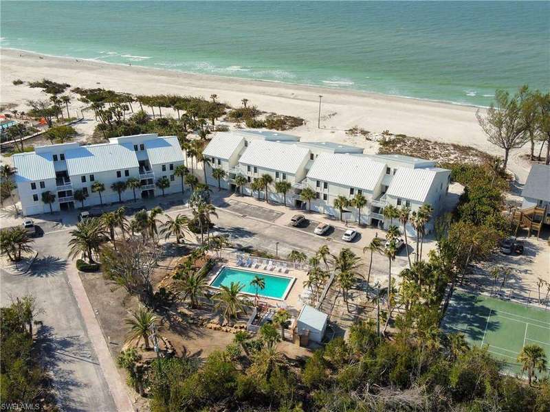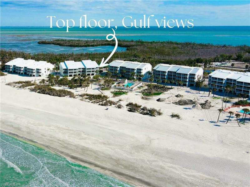 Don't miss this RARE two-story, 3 bedroom, 3 bathroom Beach Villa offering direct gulf views! The corner location ensures abundant natural light and enhanced privacy, while the open floor plan seamlessly connects the living, dining, and kitchen areas, perfect for entertaining or relaxing after a day at the beach. Savor in the calm sound of the waves while witnessing an incredible Captiva sunset from the luxury of your living room or patio. Located on the lower level are the primary bedroom with en-suite bathroom and a guest bedroom + bathroom. Stack washer & dryer as well! Walk upstairs to the additional bedroom offering an en-suite bathroom. Plenty space for family, friends, and guests! If you're seeking an investment or family property, this property provides the perfect blend of coastal living and convenience. As part of Gulf Beach Villas, residents and guests enjoy access to a pool, tennis/pickleball courts, grills, and steps to the sandy beaches. Just walking distance to the Village of Captiva, retail shops, Starbucks, and restaurants!