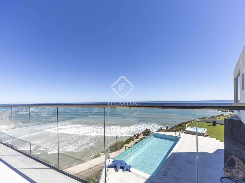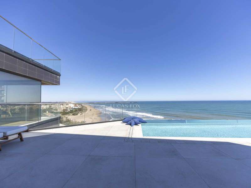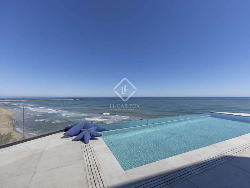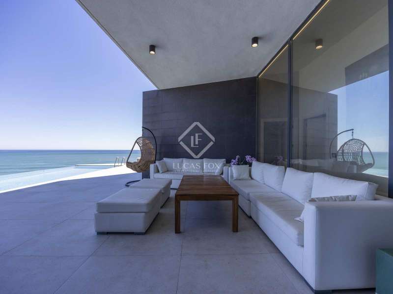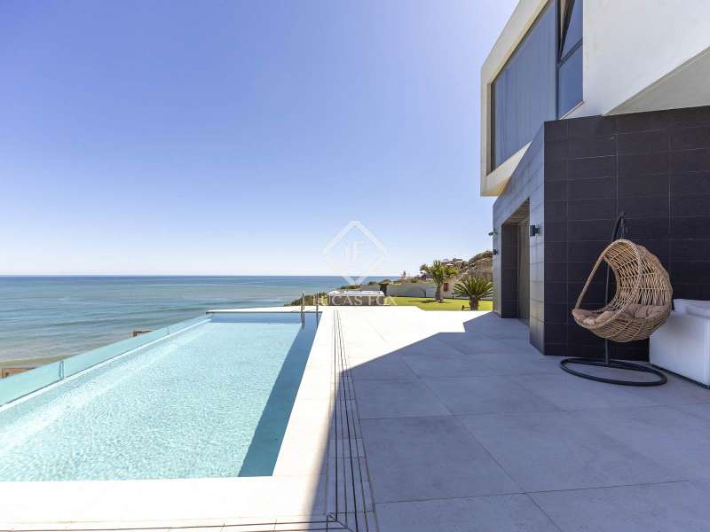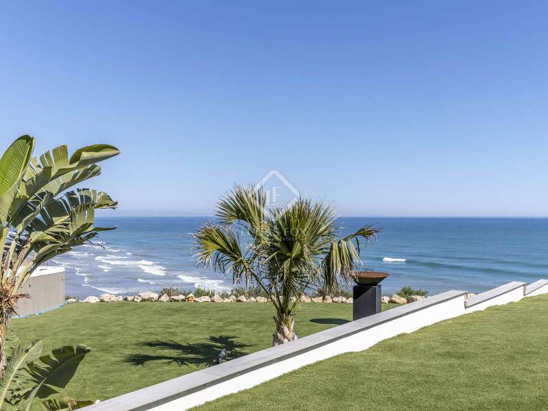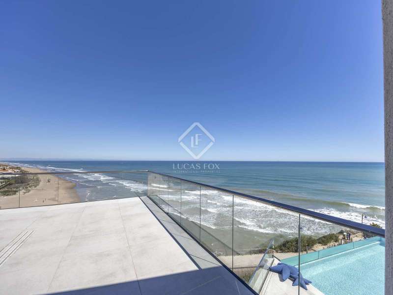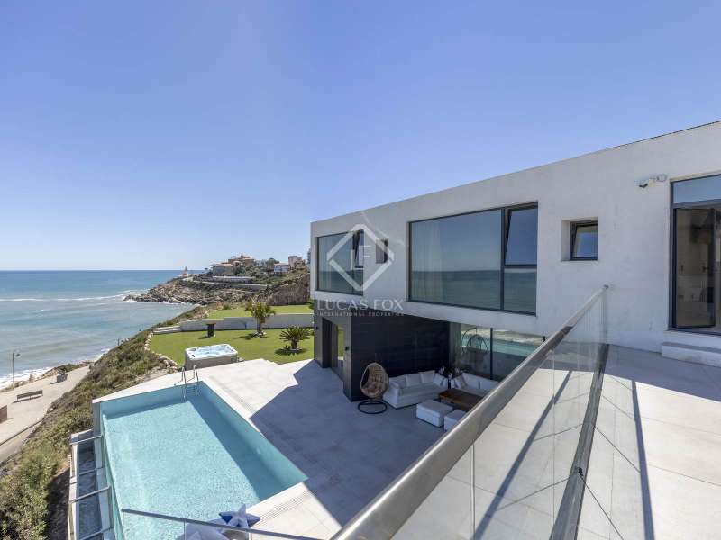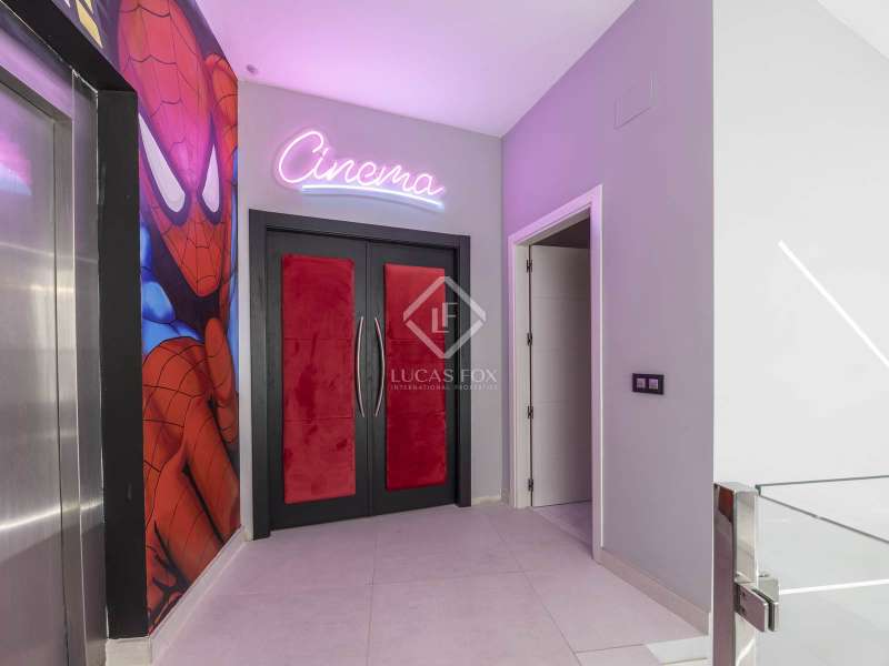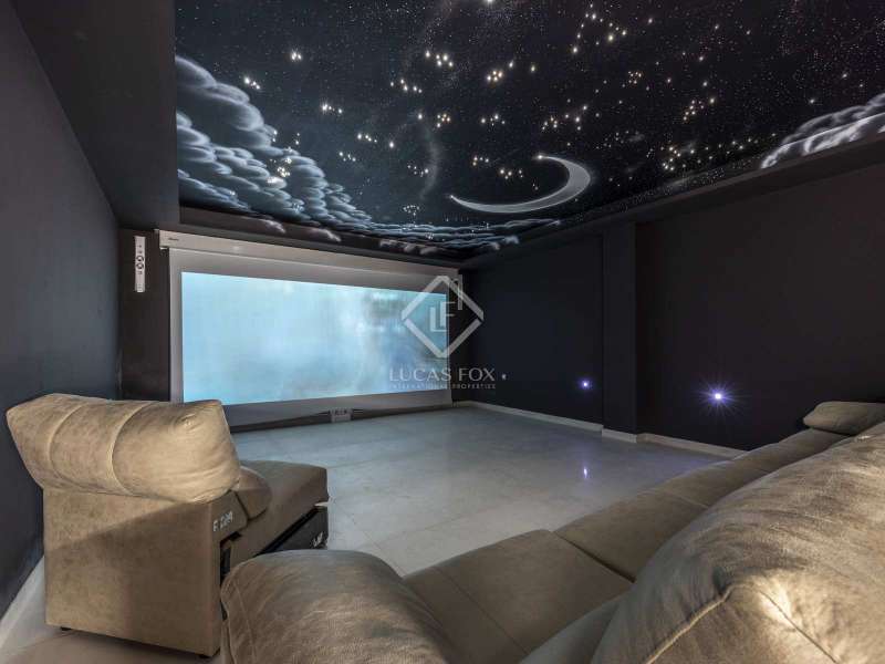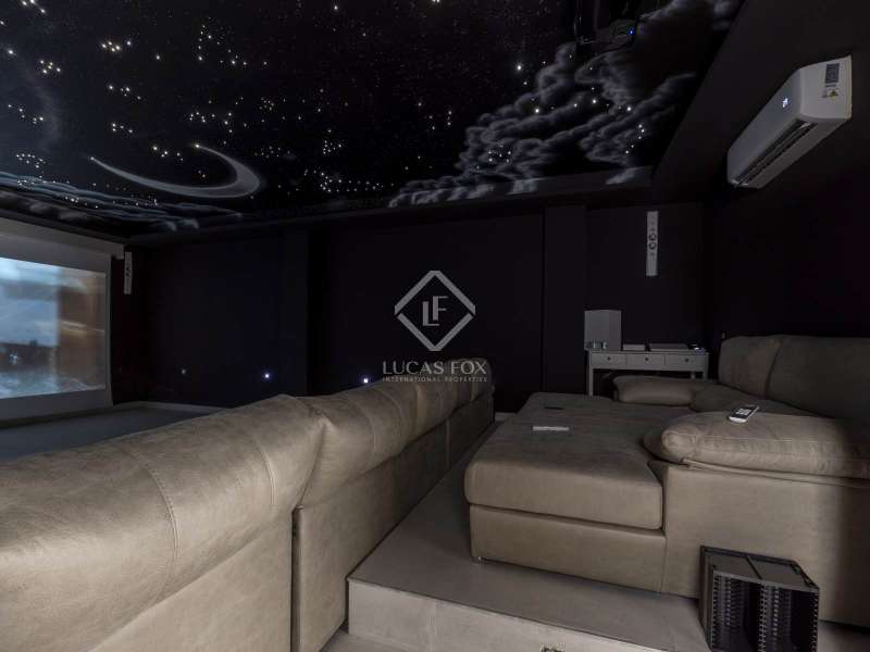 Lucas Fox presents this magnificent villa with a surface area of 587 m² built on an 803 m² plot with panoramic sea views for sale in Cullera. The property is distributed over five floors: two main ones that respectively house the night area and the day area with access to the garden and the pool, as well as two intermediate floors, one set up as a play and recreation area and the other as a professional cinema. Finally, the ground floor offers the garage and a fantastic wine cellar. All of them are connected by a lift with capacity for six people. At the entrance to the property, there is a garage with capacity for more than four vehicles, although we could also park another three outside. In addition, we find the entrance door to the wine cellar excavated in the rock of the mountain itself. The spectacular main floor has the day area with the large living-dining room with a modern kitchen diner. It benefits from large floor-to-ceiling windows that allow in plenty of natural light, offer panoramic views of the sky and the sea, and give access to the garden and pool. On this same floor, the large main suite is located, with a private bathroom and a terrace with sea views. From the living room, we access the outdoor area. Here, we find a huge terrace facing northeast, where you can enjoy the impressive views of the sea and the horizon. In addition, it has an infinity pool, a jacuzzi for six people with water jets and a garden with artificial grass and an original barbecue. The bedroom floor has four double bedrooms with private bathrooms, built-in wardrobes and spectacular views of the sea. The intermediate floors are intended for the leisure and recreation area. In the first, we have a spacious games room with a professional pool table, foosball and a bar. Everything you need to liven up family gatherings. The second offers a fantastic professional cinema room with a motorized screen, sound system and comfortable sofas where you can fully enjoy the seventh art. The property has spacious rooms and bedrooms, as well as all kinds of details: slate façade, hot and cold air conditioning system, exterior and interior cameras and alarms, secure doors at all accesses to the property with master key, porcelain floor and marble and lights with motion sensors, among others. Contact us so we can offer you more detailed information and organize a personalized visit.