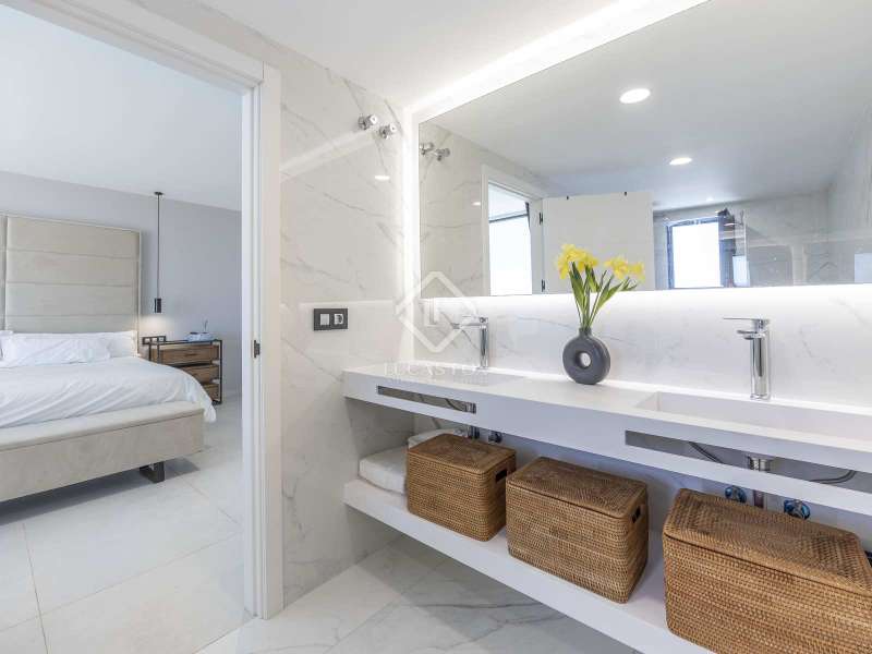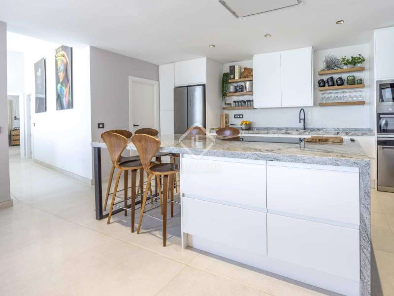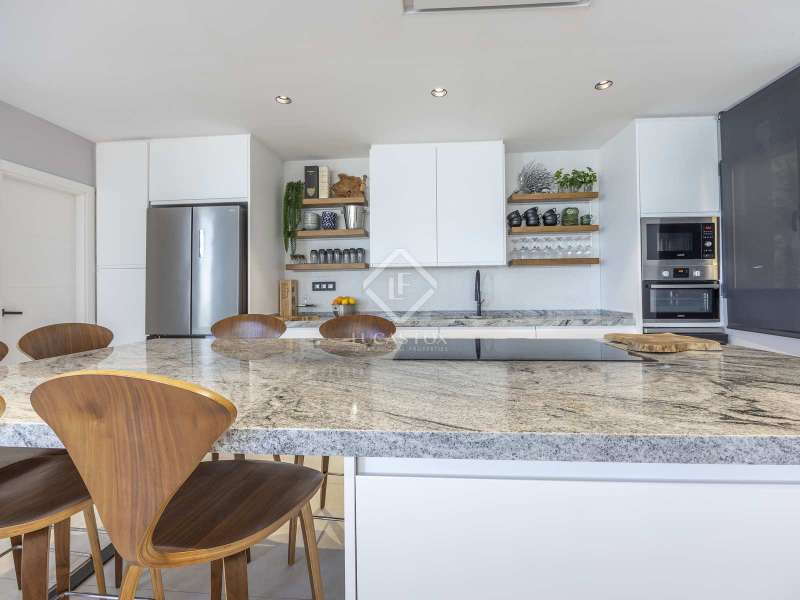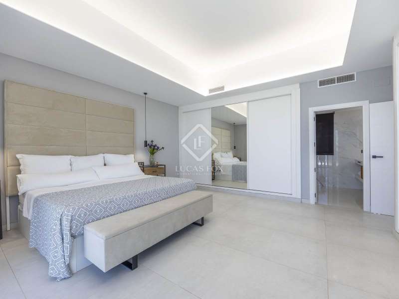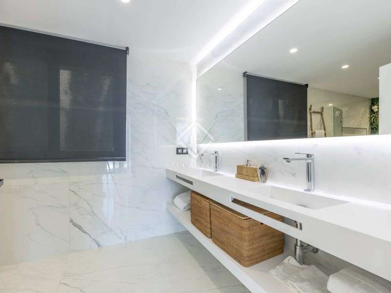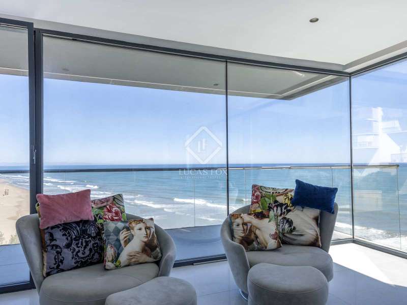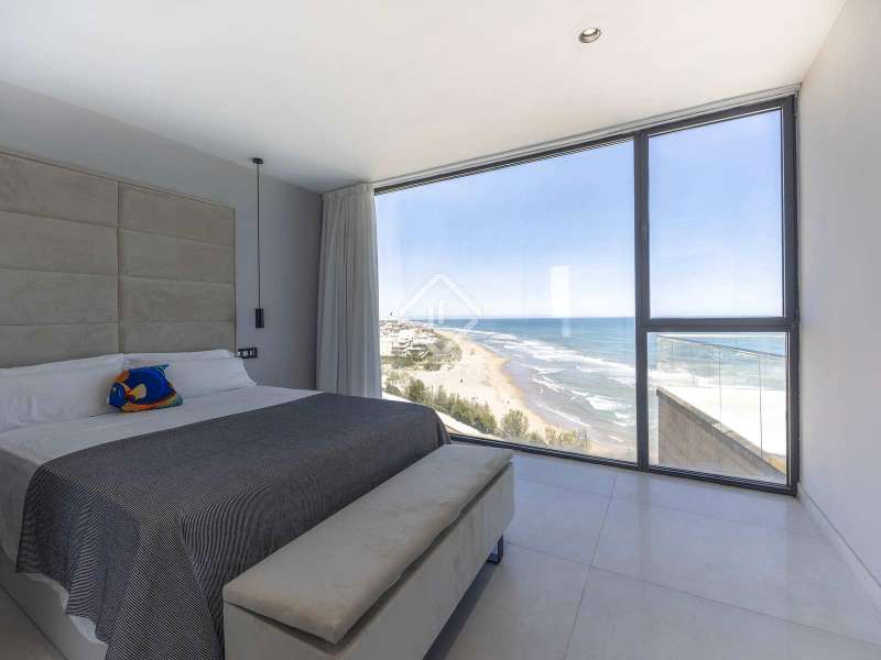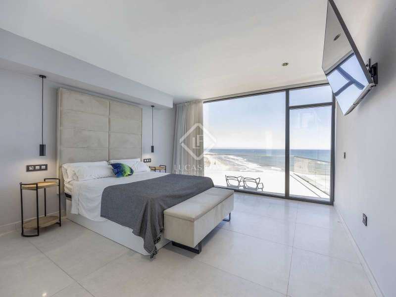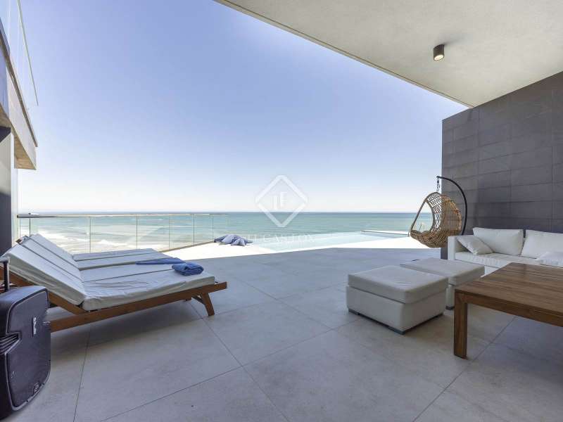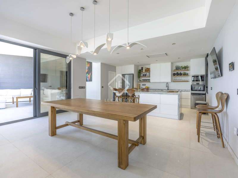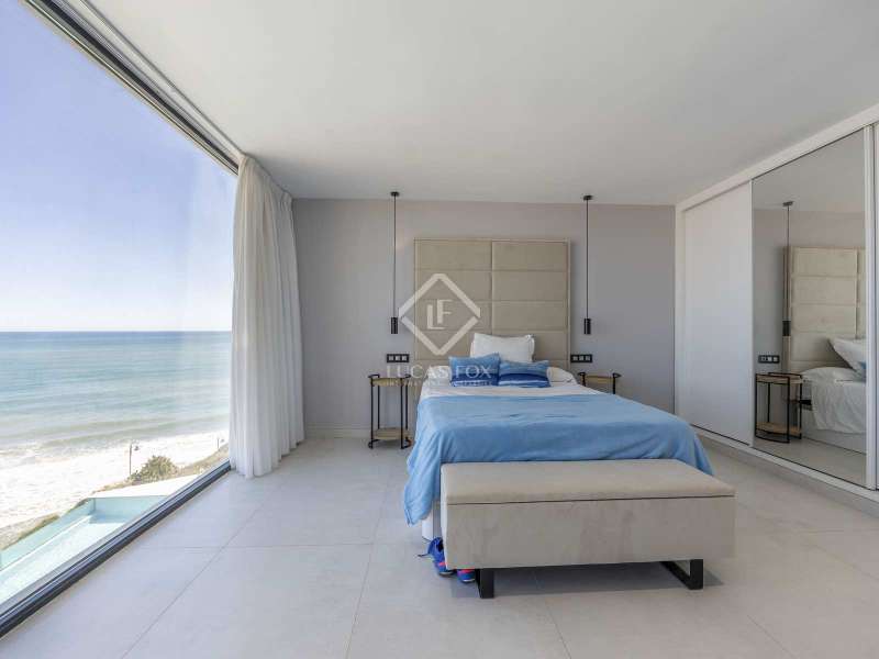 Lucas Fox presents this magnificent villa with a surface area of 587 m² built on an 803 m² plot with panoramic sea views for sale in Cullera. The property is distributed over five floors: two main ones that respectively house the night area and the day area with access to the garden and the pool, as well as two intermediate floors, one set up as a play and recreation area and the other as a professional cinema. Finally, the ground floor offers the garage and a fantastic wine cellar. All of them are connected by a lift with capacity for six people. At the entrance to the property, there is a garage with capacity for more than four vehicles, although we could also park another three outside. In addition, we find the entrance door to the wine cellar excavated in the rock of the mountain itself. The spectacular main floor has the day area with the large living-dining room with a modern kitchen diner. It benefits from large floor-to-ceiling windows that allow in plenty of natural light, offer panoramic views of the sky and the sea, and give access to the garden and pool. On this same floor, the large main suite is located, with a private bathroom and a terrace with sea views. From the living room, we access the outdoor area. Here, we find a huge terrace facing northeast, where you can enjoy the impressive views of the sea and the horizon. In addition, it has an infinity pool, a jacuzzi for six people with water jets and a garden with artificial grass and an original barbecue. The bedroom floor has four double bedrooms with private bathrooms, built-in wardrobes and spectacular views of the sea. The intermediate floors are intended for the leisure and recreation area. In the first, we have a spacious games room with a professional pool table, foosball and a bar. Everything you need to liven up family gatherings. The second offers a fantastic professional cinema room with a motorized screen, sound system and comfortable sofas where you can fully enjoy the seventh art. The property has spacious rooms and bedrooms, as well as all kinds of details: slate façade, hot and cold air conditioning system, exterior and interior cameras and alarms, secure doors at all accesses to the property with master key, porcelain floor and marble and lights with motion sensors, among others. Contact us so we can offer you more detailed information and organize a personalized visit.