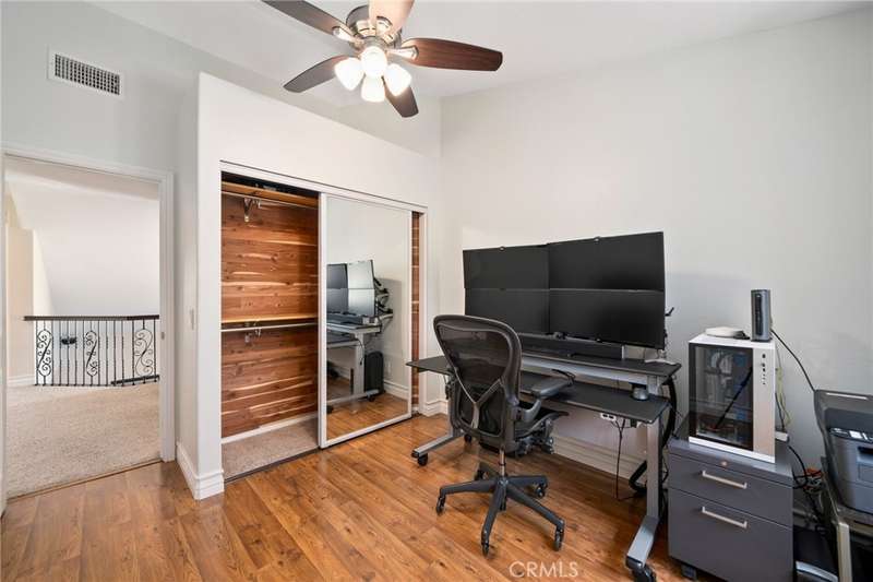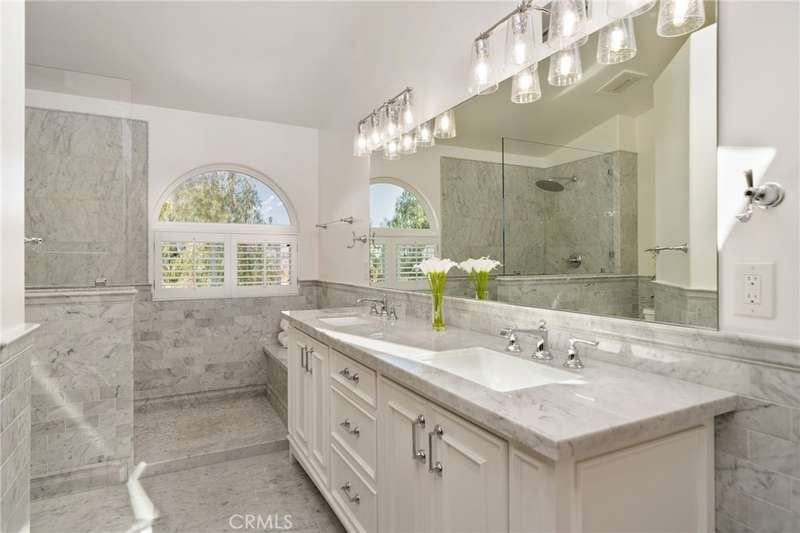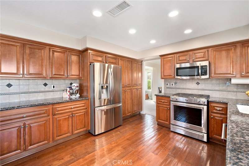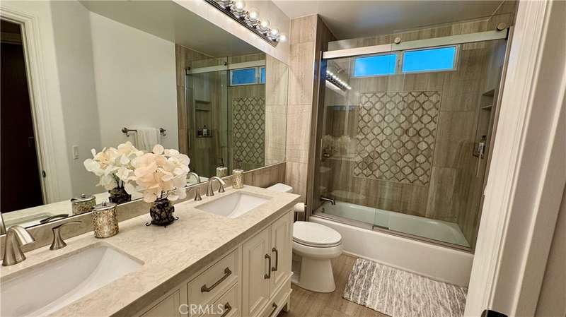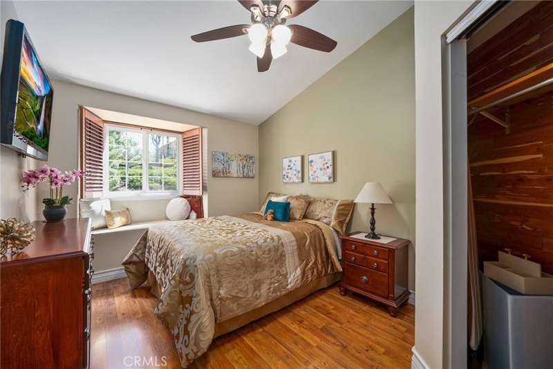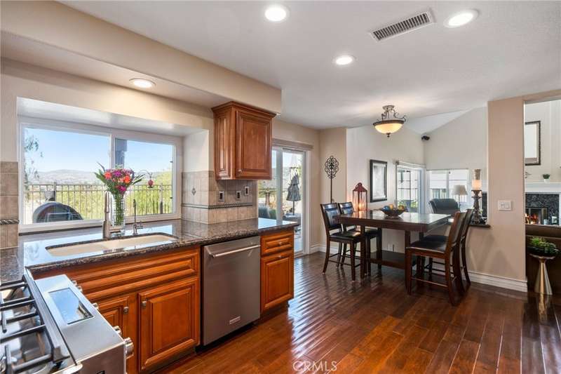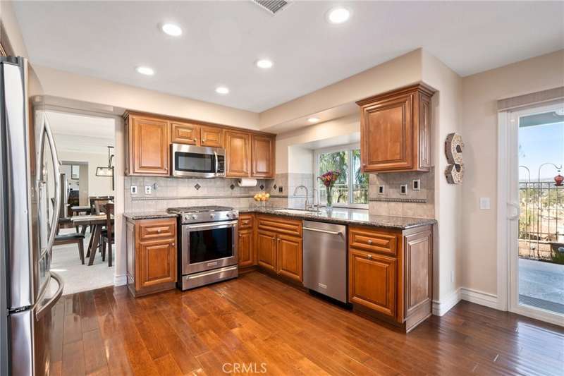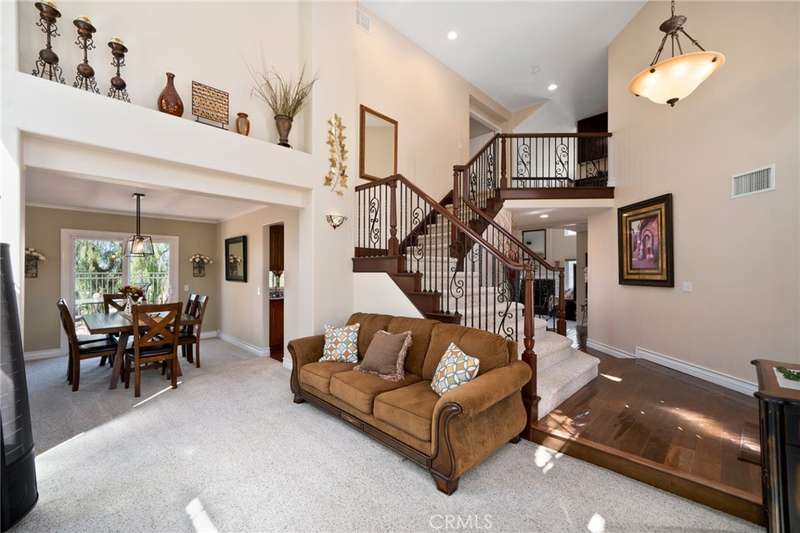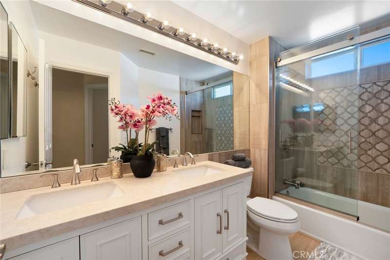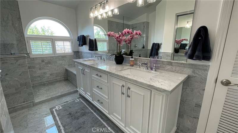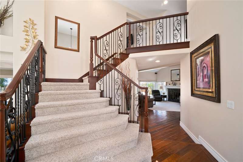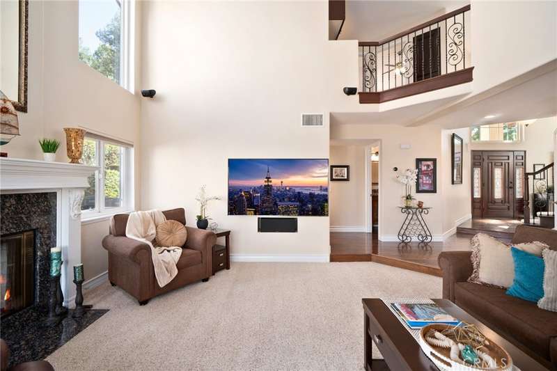Stunning Anaheim Hills Home with Panoramic Views! Nestled in the heart of Anaheim Hills on a peaceful cul-de-sac, 8085 E Kendra Ct offers breathtaking city light and snow-capped mountain views. This beautifully upgraded 4-bedroom, 2.5-bath home spans approximately 2,200 sq. ft. and features a 3-car garage with epoxy floors and built-in cabinetry. Step inside to find elegant wood flooring and an upgraded iron staircase, setting the tone for this sophisticated residence. To the right, the inviting family room boasts a cozy fireplace, Bowers & Wilkins surround sound system, and a sliding glass door that leads to the backyard--offering an incredible indoor-outdoor living experience. Electronic equipment is neatly stored in a pullout cabinet for a sleek, clutter-free look. The remodeled kitchen is a chef's dream, featuring recessed lighting, stainless steel appliances, granite countertops, a stylish tile backsplash, and a reverse osmosis system. A breakfast nook and slider provide easy access to the backyard, perfect for morning coffee with a view. The formal dining room, conveniently adjacent to the kitchen and you have another slider to the backyard. The spacious formal living room adds to the home's charm.The main floor also includes a remodeled half bath and an inside laundry room for convenience. Upstairs, the luxurious primary suite is a private retreat, complete with a ceiling fan, a sliding door leading to a Trex deck with stunning views, and a walk-in cedar-lined closet. The remodeled primary bath features dual sinks, a carrara marble shower with matching walls, brizo faucets and fixtures and a skylight with dual-pane glass and an automatic shade. The secondary bedrooms offer LVP floors, ceiling fans, cedar-lined closets, and window shutters. The remodeled hall bath features dual sinks and a porous marble shower with matching walls.Exceptional Outdoor Living designed for relaxation and entertaining, the backyard boasts professional landscaping by Seth Pompey, landscape lighting, a built-in BBQ with a fridge, a covered patio extending from the upper deck, and an above-ground spa with an outdoor shower. Additional Features Recently painted exterior, New garage doors & rain gutters. High-energy efficient roof with dual-layer paper, reflective membrane. Whole-home soft water and filtration system, 9 security cameras on the house & 12 on the street This meticulously maintained home offers the perfect blend of comfort, luxury, and breathtaking scenery.