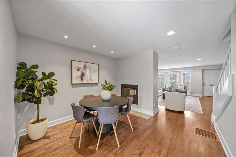 Plaza living at its finest! Situated in the heart of West Plaza, this beautifully updated 2BDRM / 3.1 Bath townhome offers 4 levels of living space, rare gated parking, and excellent location — all steps from the city’s best shopping and dining. Designer touches throughout include gorgeous hardwoods, a fresh neutral palette, and updated kitchen and baths. Main floor features a spacious living room with double-sided fireplace, formal dining, light and bright eat-in kitchen with quartz counters, designer tile backsplash, stainless appliances (including gas range/oven), pantry, and access to the newly refinished private deck. Updated half bath completes this level. The primary suite boasts soaring vaulted ceilings, refreshed bath with double vanity & shower, and walk-in closet. In-suite staircase leads to the third-floor loft—with floor-to-ceiling built-ins, beverage fridge, and private balcony—perfect for additional family room, reading nook, or versatile workspace. The second bedroom has double closets and its own ensuite bath with shower/tub. Laundry is conveniently located between the two bedrooms. The finished lower level adds more flexible living space, built-in storage, and a third updated full bath with shower. Three private outdoor spaces, in a well-maintained gated community, with secured parking (2 surface spaces plus your own garage)...truly a rare opportunity to enjoy updated, low maintenance living in one of Kansas City’s most desirable locations!