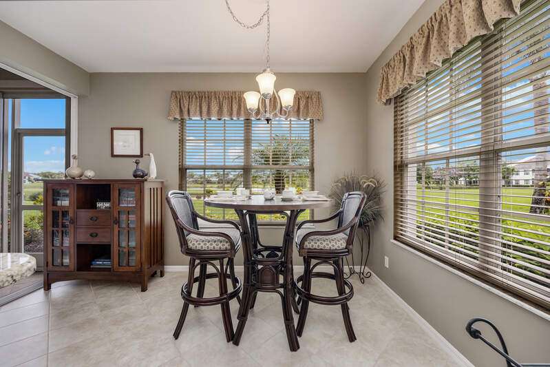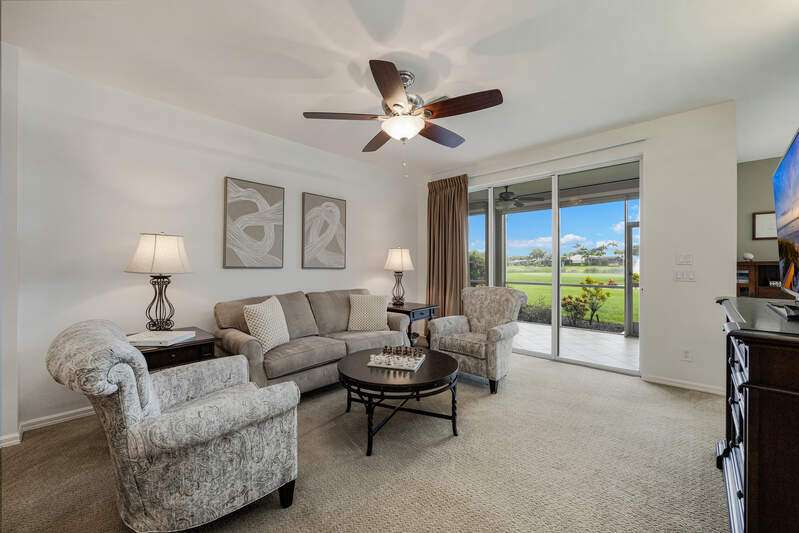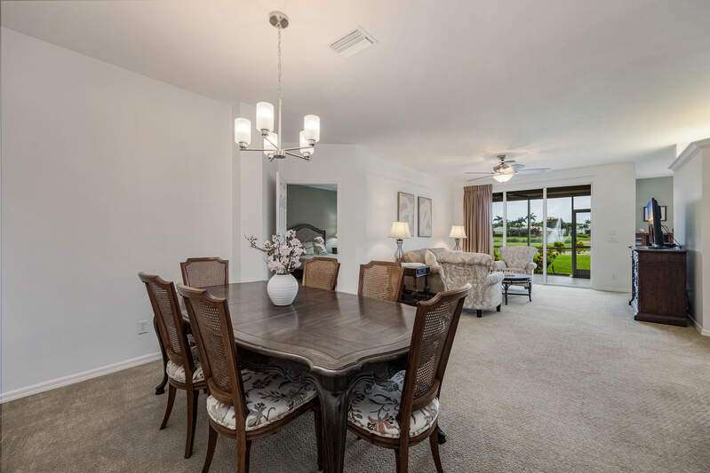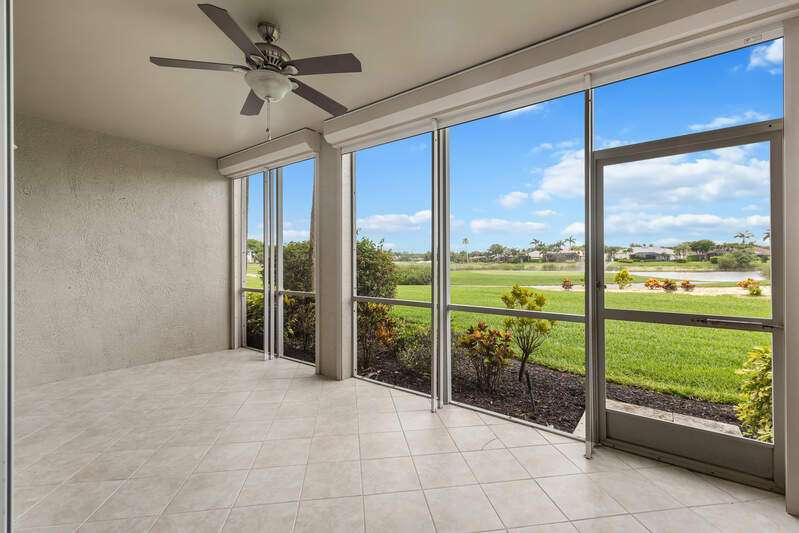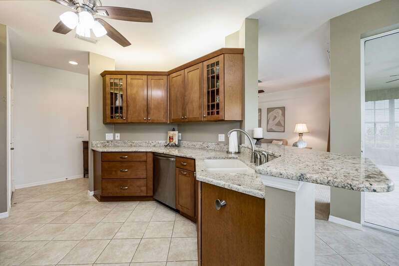 Welcome to this stunning first floor property in North Naples. This home offers the pinnacle of luxury living with 24-hour security, three 9-hole golf courses, a newly renovated fitness center, multiple dining facilities, and a vibrant clubhouse for social activities. Overlooking a picturesque golf course and serene lake with a fountain, the outdoor space includes a screened lanai with hurricane shutters. The renovated kitchen and bathrooms boast custom cabinets, granite countertops, and a newly painted living/dining area, while a new dining light fixture adds a touch of elegance. Conveniently located near the Strand/Publix shopping center and just a stone's throw from breathtaking beaches and outstanding restaurants, this property is offered turnkey, making it a standout choice for your next move. BRAND NEW AC INSTALLED SEPT 2025!