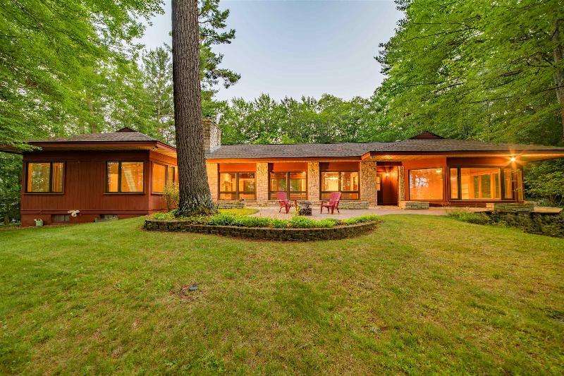 Located on a spectacular 2.44 acre parcel w/ 797 feet of frontage on the Rhinelander Chain of Lakes, this 3 bedroom, 3 bath home is under 2 miles from town. The home offers a spacious dining & living room w/ fireplace & lake views, a lovely kitchen w/ cheery dinette area for morning coffee, an impressive semi-circular & windowed great room w/ relaxing views of the lot & shoreline, a primary suite w/ full bath, shower & walk-in closet, 2 more bedrooms, 2nd full bath, and main level laundry area. The lower level provides a 3rd full bath, storage, a bonus room for an office or workout room. Additional pluses are a 2+ car heated garage, professional landscaping, a lake-facing brick paver patio, double storage shed, and paved driveway.