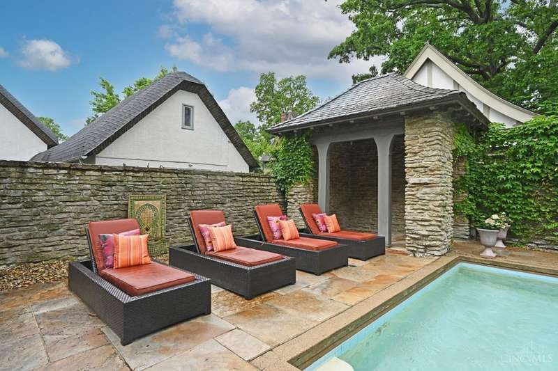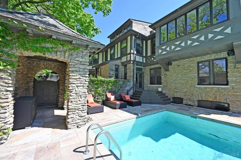 Tucked behind Madison Road on a quiet private lane, this elegant Tudor is a very special property. Large inviting rooms with open floor plan feel luxurious. This house includes a private pool and expansive outdoor entertaining area which is accessible through the living room, dining room and kitchen. Solarium off of the living room fills the house with natural light. The oversized garage fits four cars and has a nanny suite above it that is also connected to the second floor. Beechcrest is one of Cincinnati's finest streets located in East Walnut Hills. It's a short walk to O'Byronville and Woodburn business districts and 10 minutes to downtown.