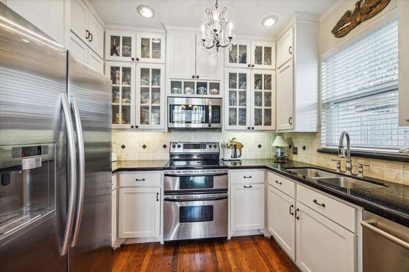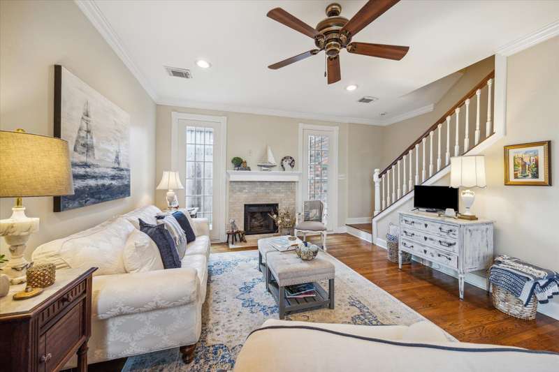 A rare find! No HOA. This charming 2/2.5 West University area single family, two-story home is tucked away providing privacy, appealing floor plan, high ceilings and great natural light. With first floor living, gas log fireplace, an abundance of double pane windows, and hardwoods, this jewel checks many boxes. A delightful powder bath with antique dresser with drop-in sink serves the first floor. The inviting kitchen includes glass front cabinets, neutral granite and travertine. The second floor boasts an attractive, calm primary suite with impressive bath with soaking tub, separate shower, water closet, and ample counter space with vanity area. A walk-in closet completes the suite. The utility with upper shelves and nearby linen closet separates the primary and secondary bedrooms. The light filled secondary suite features a walk-in closet pleasing bath w/dresser vanity, marble surround and travertine floors. The outdoor space is pleasing & low maintenance. 2049 sqft lot (per survey).