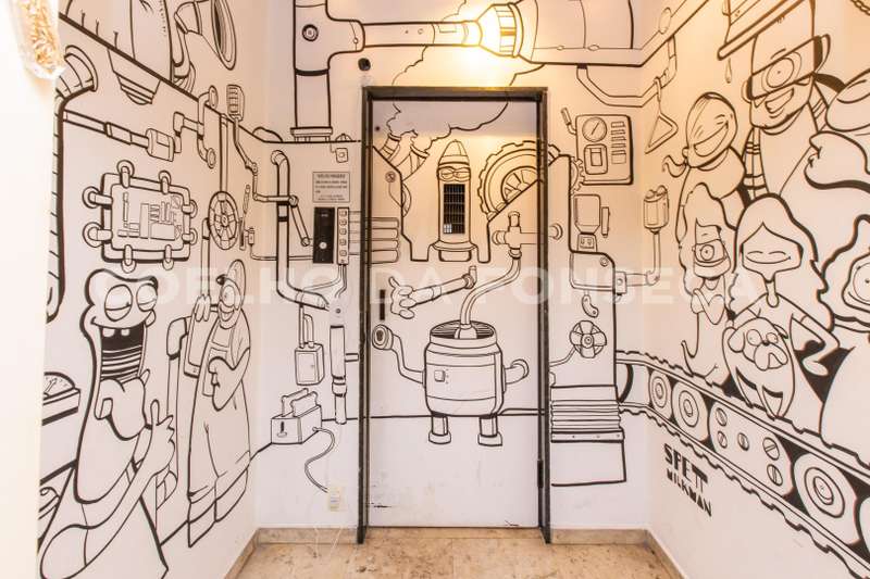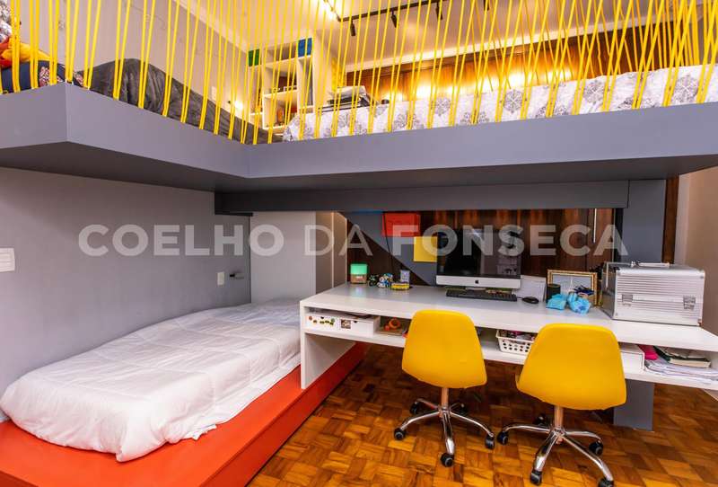 Apartamento com espaços amplos e decorado de maneira divertida para acomodar várias pessoas e funções no mesmo espaço.