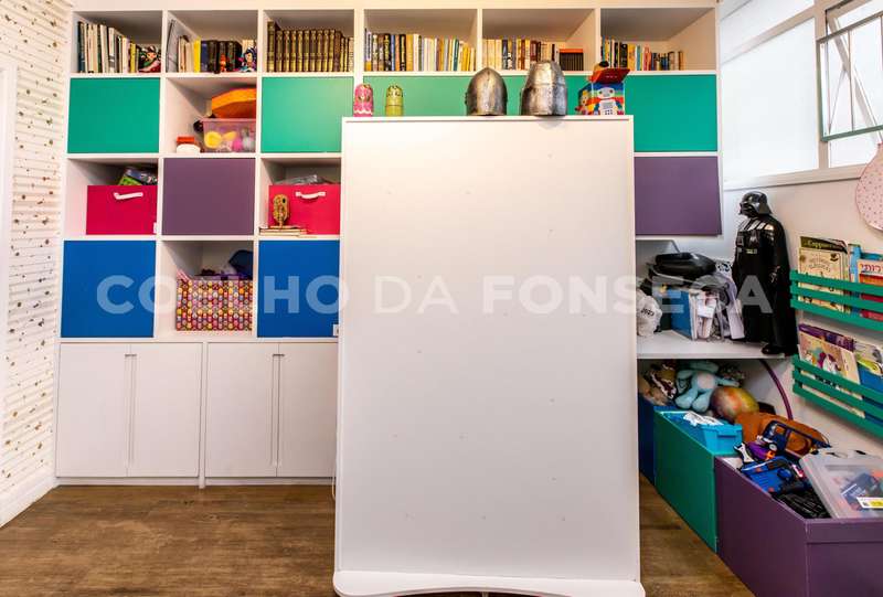 Sala para 3 ambientes com grande varanda.Escritório transformado em uma enorme brinquedoteca com direitoa palco.