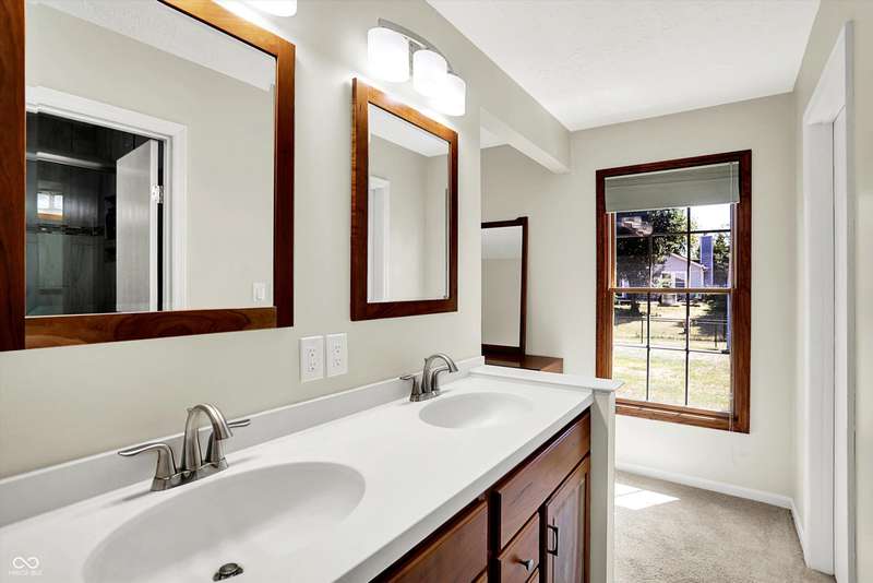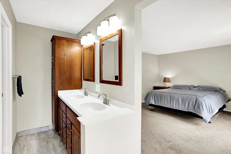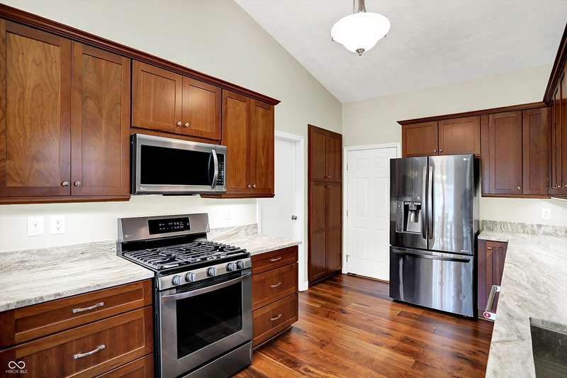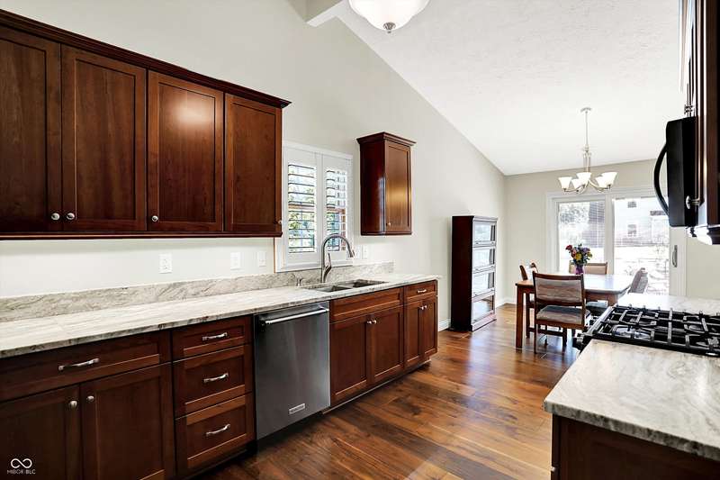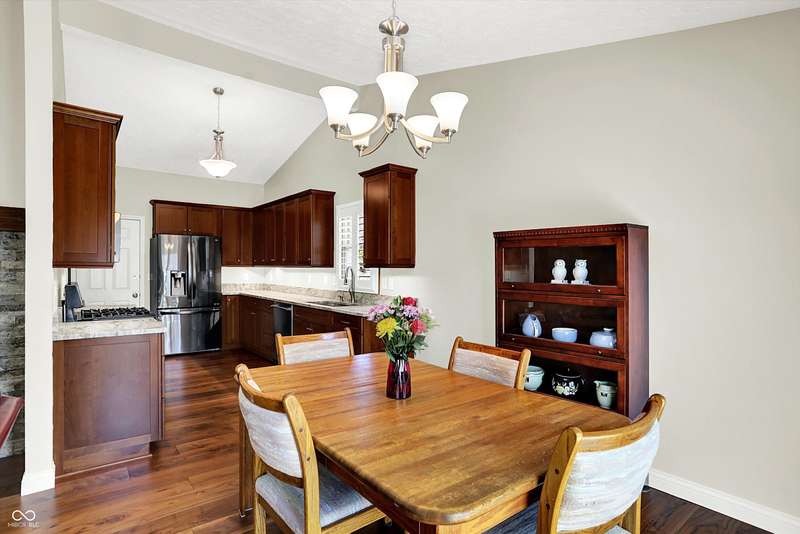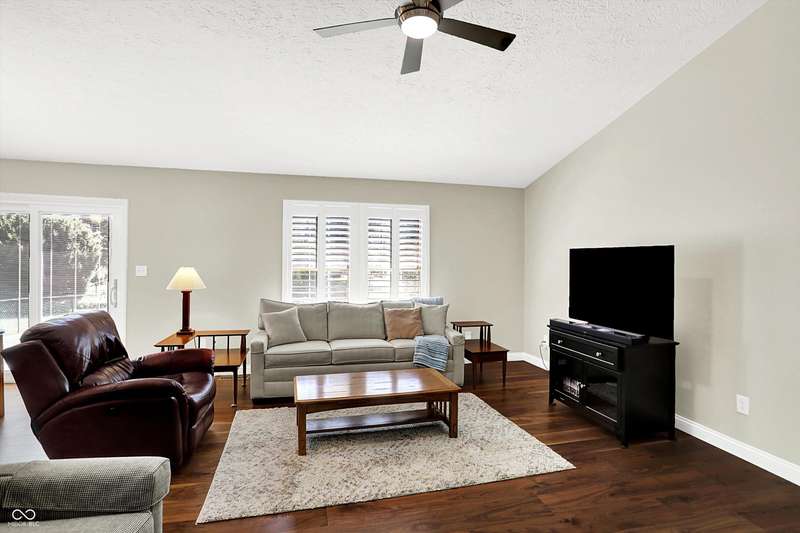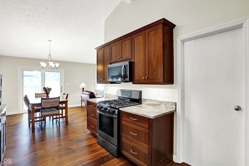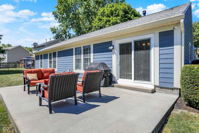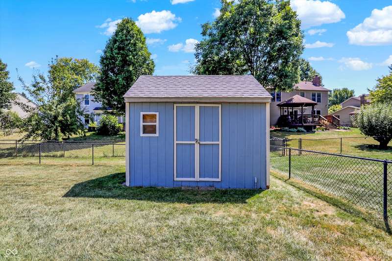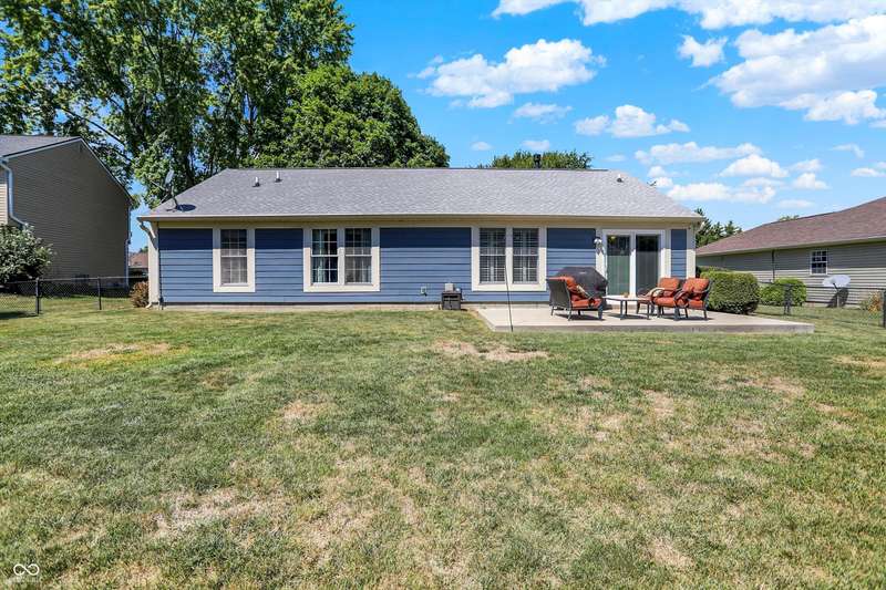 Welcome to this beautiful, one owner, well maintained ranch home in the popular Sunblest neighborhood! The remodeled kitchen is a showstopper, featuring 42-inch cabinets, leathered quartz counters, gas oven range, and stainless-steel appliances. The spacious great room boasts a vaulted ceiling, a cozy updated gas fireplace with custom mantle, and beautiful wide plank walnut engineered hardwood floors. The primary suite offers an updated bathroom including dual sinks, tiled shower, tile flooring, and a walk-in closet with built-in organizers. The second full bath has also been tastefully updated. Fresh interior paint (2025) and washer and dryer are included. Bonus highlights include a finished garage with workbench and heater, storage shed with electricity, and a large, fenced backyard perfect for entertaining. Recent updates provide peace of mind: Hardie Plank siding, soffit, gutters, and roof (2020), water heater (2021), and water softener (2024). All of this is just a short walk to downtown Fishers, the Nickel Plate District Amphitheater, Holland Park, shopping, restaurants, and more!