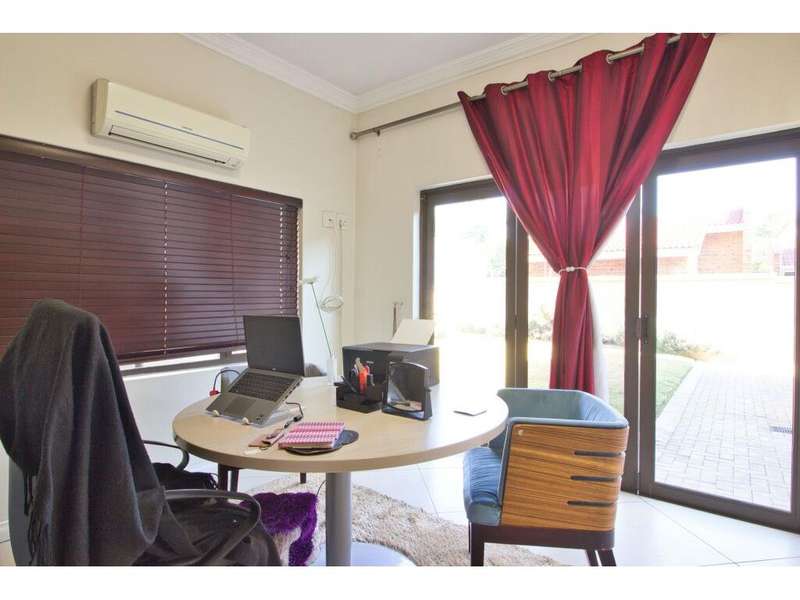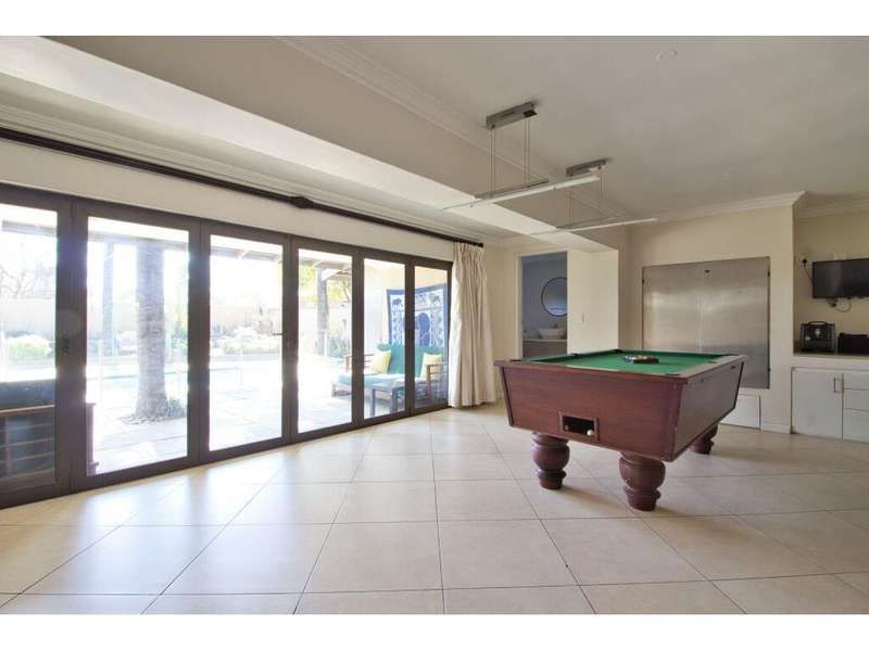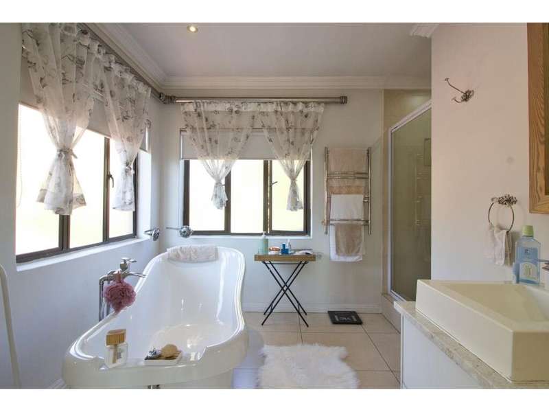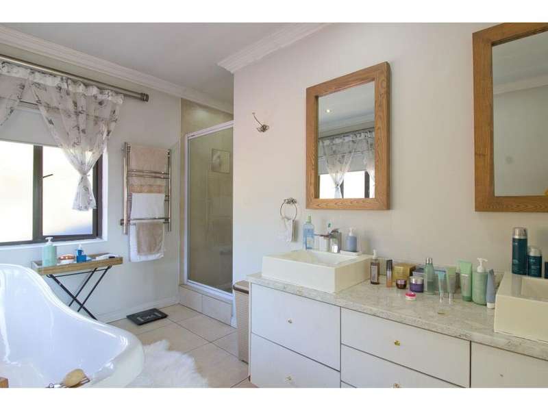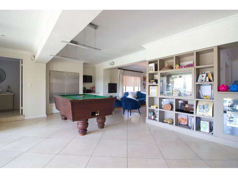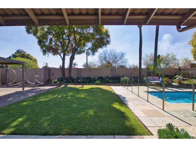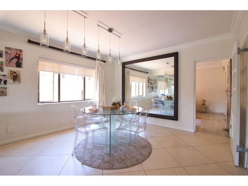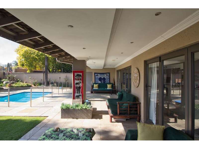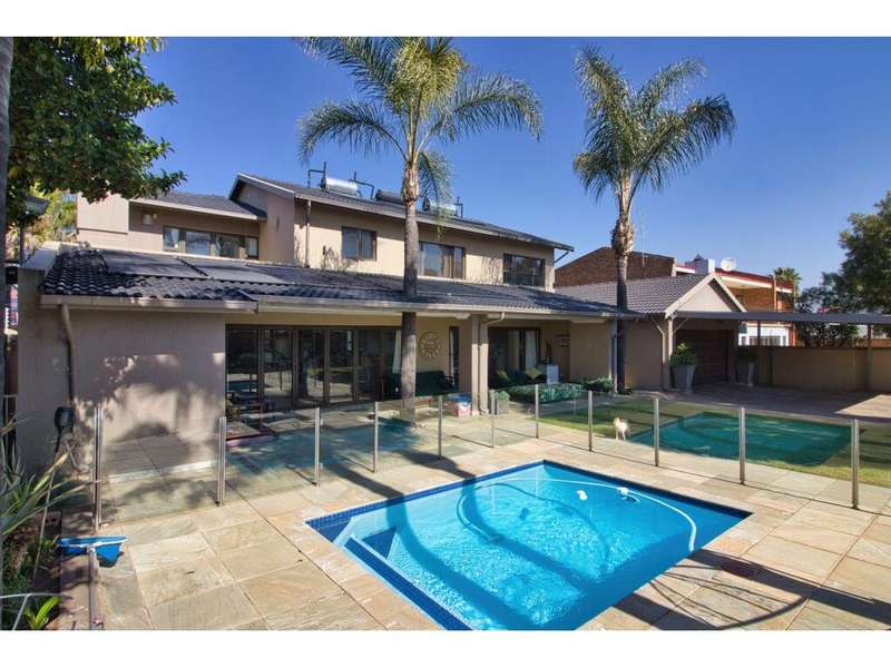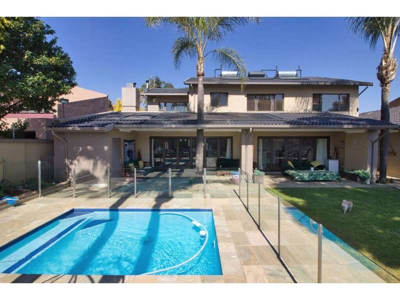 Located in the sought-after, secure suburb of Dowerglen Ext 3 and set directly opposite a beautiful park, this elegant family home offers a serene lifestyle surrounded by nature. The tranquil setting is enhanced by its prime location, close to top-rated schools, an extensive choice of shopping centres, all major highways, and just 10 minutes from O.R. Tambo International Airport. Step inside and be welcomed into a modern, sophisticated home where stylish finishes and generous spaces combine to create effortless living. Designed with the entertainer in mind, the indoor and outdoor areas flow seamlessly together. Stacker doors open onto a spacious patio overlooking a sparkling, low-maintenance pool and a beautifully landscaped garden. These outdoor living spaces connect directly to an inviting indoor lounge, complete with a cozy wood-burning fireplace?Çöideal for relaxed evenings. The semi-open plan tiled living areas include a formal lounge, a family room, a dining space, and a bar area. These lead into a sleek, modern white kitchen featuring black granite countertops, a central island, and a scullery, with a separate laundry tucked away at the rear of the home for added practicality. Also on the ground floor is a private guest suite offering a full en-suite bathroom and ample built-in cupboards?Çöideal for visitors or extended family. A guest toilet is conveniently located off the main living area. There is also a versatile study that overlooks the garden, complete with built-in cupboards and warm wood laminate flooring, perfect for working from home or a quiet reading retreat. Upstairs, the home continues to impress with four generously sized bedrooms, each offering superior built-in cupboards and wood laminate flooring. The luxurious master suite features a spacious walk-in dressing room, a beautifully designed full en-suite bathroom with a freestanding tub, double vanity, and access to a private balcony that captures calming views?Çöperfect for unwinding after a long day. Two additional modern bathrooms, each with both a shower and a bath, service the remaining bedrooms comfortably. Alarm system in place plus 7 security cameras. Also 3 solar geysers Parking is ample and secure, with a tandem double garage and a carport that can accommodate up to four additional vehicles. A private staff suite with its own bathroom and kitchenette adds extra convenience. This remarkable home is ready for you to move in and start making memories. Book your viewing, make your offer, and begin your next chapter in this exceptional Dowerglen residence.