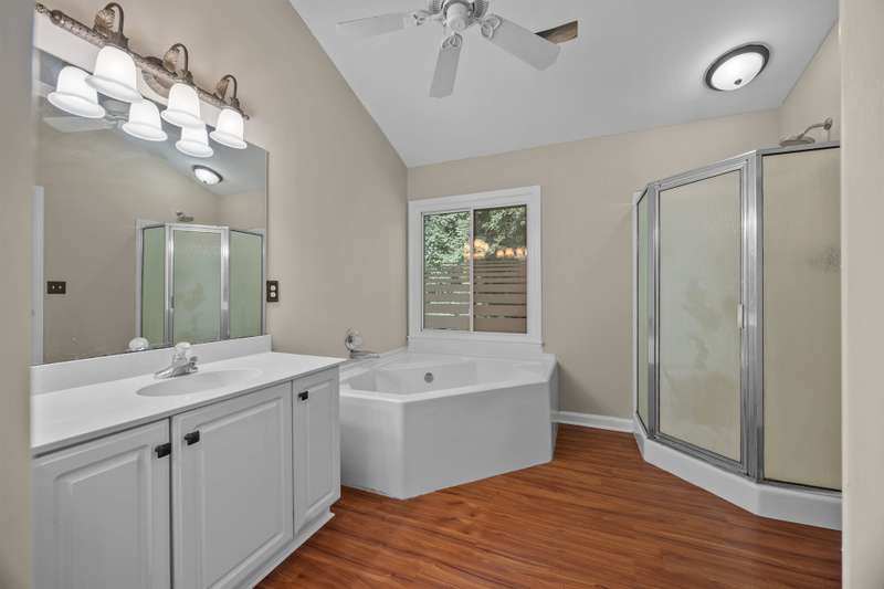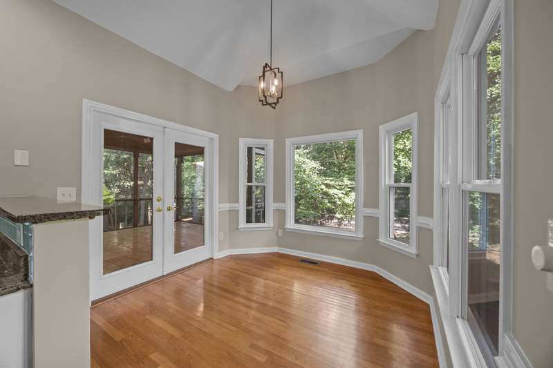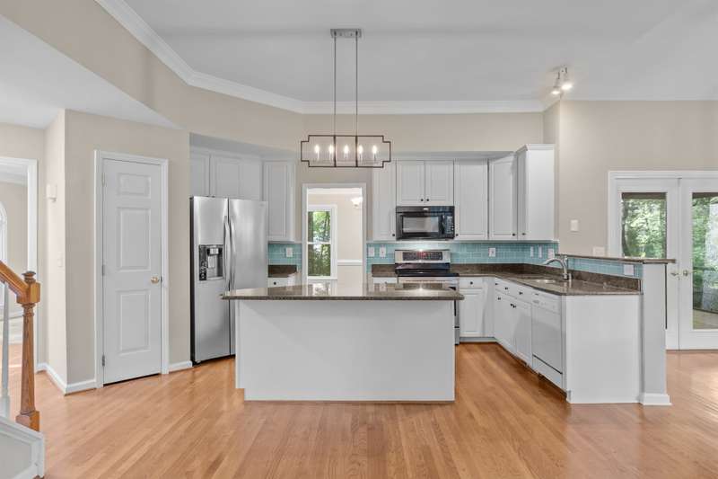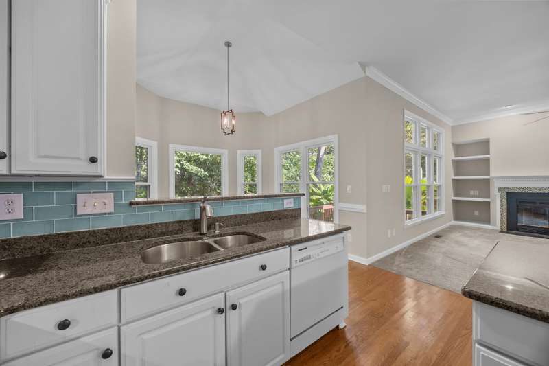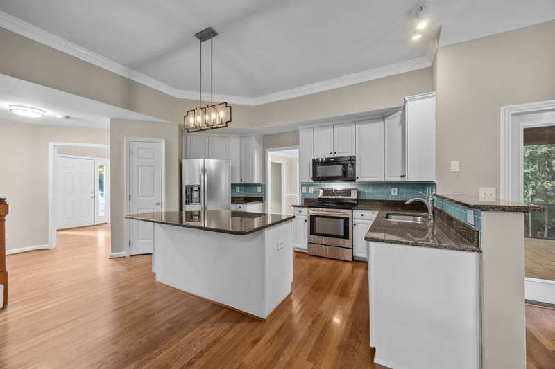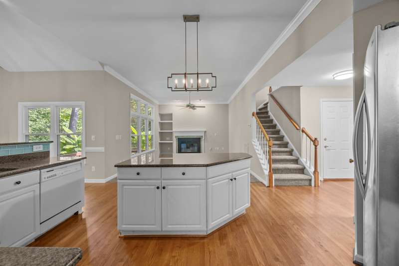 Move-in-ready home in a prime location in the popular Davis Lake neighborhood. Adjacent to community greenspace, so there is no neighbor on the left or the rear of the property. This home shines with wood flooring, fresh paint throughout, and new carpet. Wide open layout, with a vaulted breakfast room with lots of windows. Kitchen features granite white cabinets, granite counters and stainless steel appliances. Fridge, washer, and dryer remain. Front living room could be made into an office. Trimmed out with wood cased windows, crown moldings, and built-in bookcases. 4 spacious bedrooms with ceiling fans. Entertain your friends on the 14'x14' screened porch and 14'x28' deck overlooking a private, wooded back yard. The amenities area is amazing featuring a clubhouse with fitness center, swim and tennis club, pickleball court, rocking chair porch overlooking the pools, 14-acre ?property owners only? fishing lake, child-safe playground, 2 miles of walking and biking trails, beach volleyball court and a rec field. Make friends by participating in the many social activities that are organized by residents, such as a Tennis Club, Golf League, Yoga Club and more.