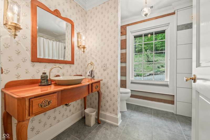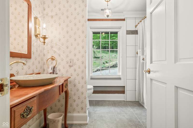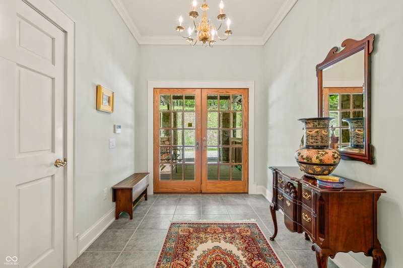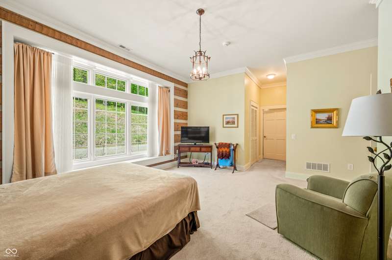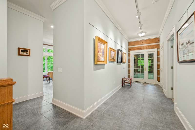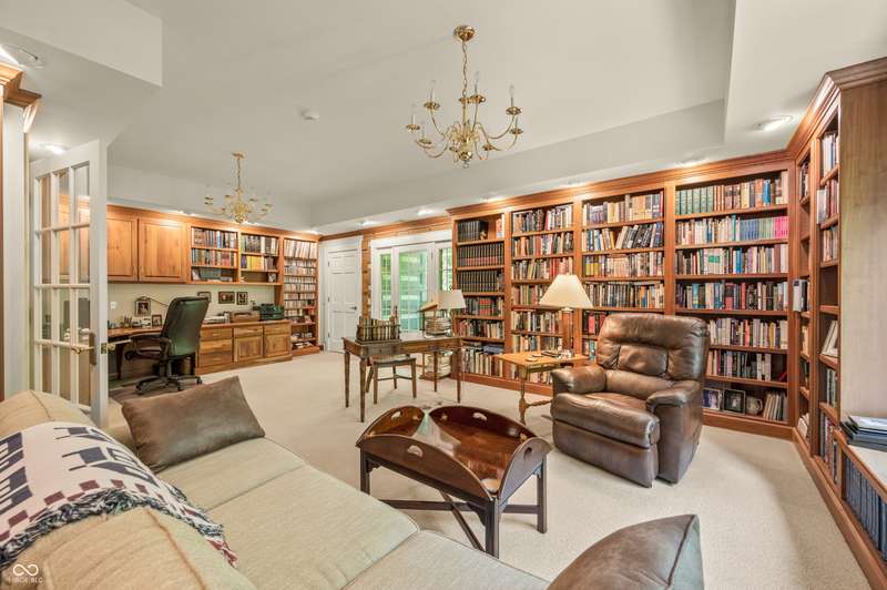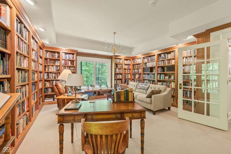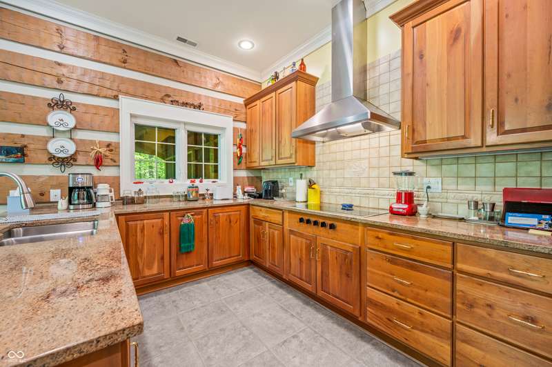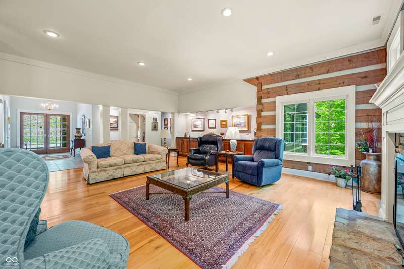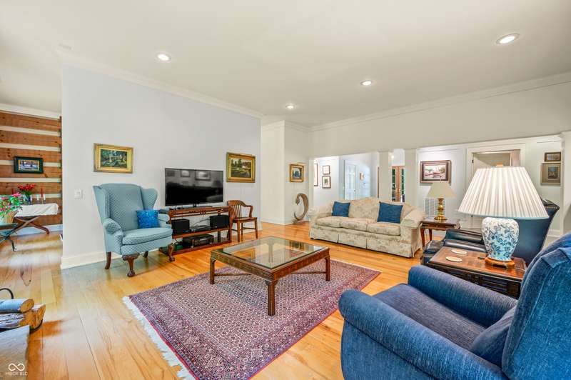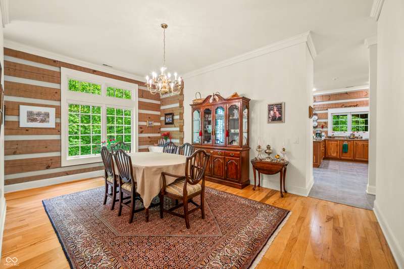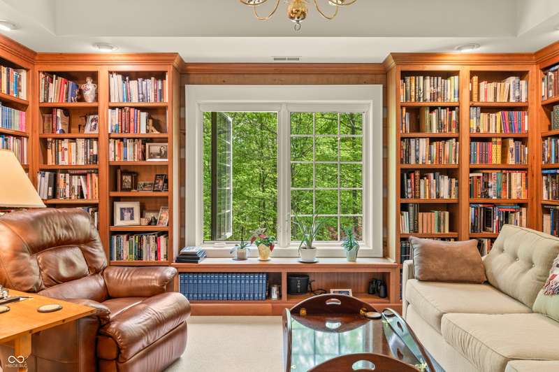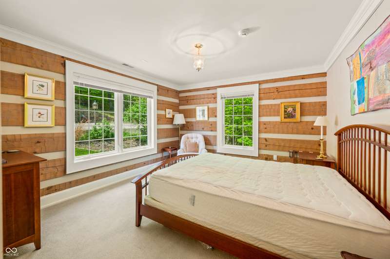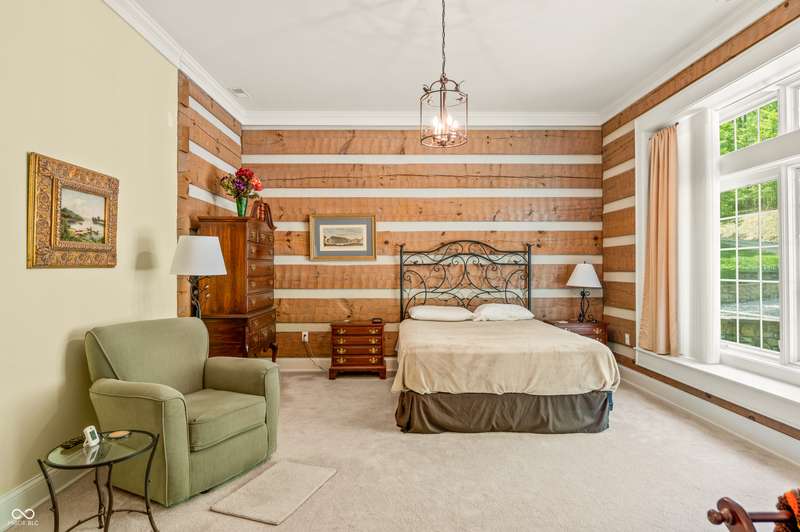 Bright and spacious luxury log home on 25 acres of mature forest. Expansive decking creates a treehouse effect and exceptional al fresco dining and entertaining space. Outdoor sculptures, including a bronze fountain piece, will remain with the cabin. Large Pella windows, ten-foot ceilings and accessibility features are throughout the home. The great room focal point is a floor to ceiling Brown County stone fireplace. Socializing with friends and family is taken to the next level with a wet bar, wine cooler, party fridge and ample area to present refreshments to guests. The dining room is ready to accommodate a banquet style table and chairs. The kitchen includes a dining area, solid surface counter tops, ample cabinetry/ pantry space, and high-end appliances. Split bedroom layout. Spacious owners suite with dual walk in closets and private bathroom with oversized threshold less glass wall shower and double sinks. Third bedroom/ library/den with built in bookcases and private deck. The lower level recreation room leads to storage and mechanical rooms, a workshop/ gym/ studio space and a back deck. Flexible basement layout could be re-envisioned for use as a separate living area, in-law quarters or create a home movie theater. Spacious screened porch with skylights and ceiling fans. An oversized three-car garage can comfortably accommodate multiple machines, gardening equipment and staging space for hobbies and outdoor pursuits. A built-in Walker Display System, with dedicated lighting, is in place for hanging fine art. The whole-home alarm system includes sensors to alert to smoke, excess moisture and other hazardous conditions. Separate thermostat controls on each level. All utilities are buried. Fiber internet. Generac generator. Conveniently located close to the town of Nashville, Bloomington and Columbus. Potential tourist home.