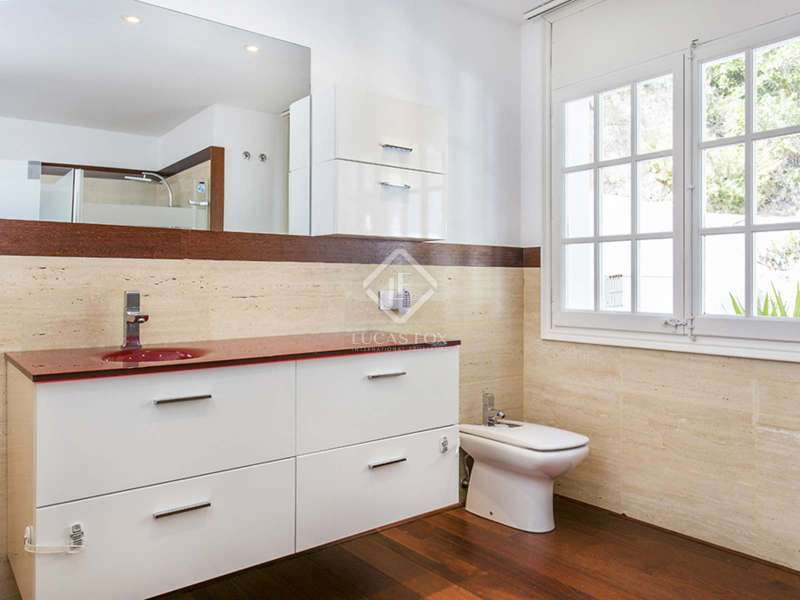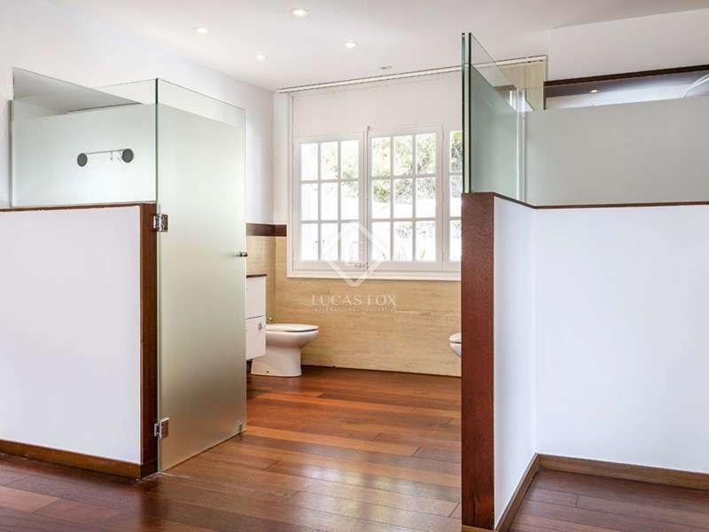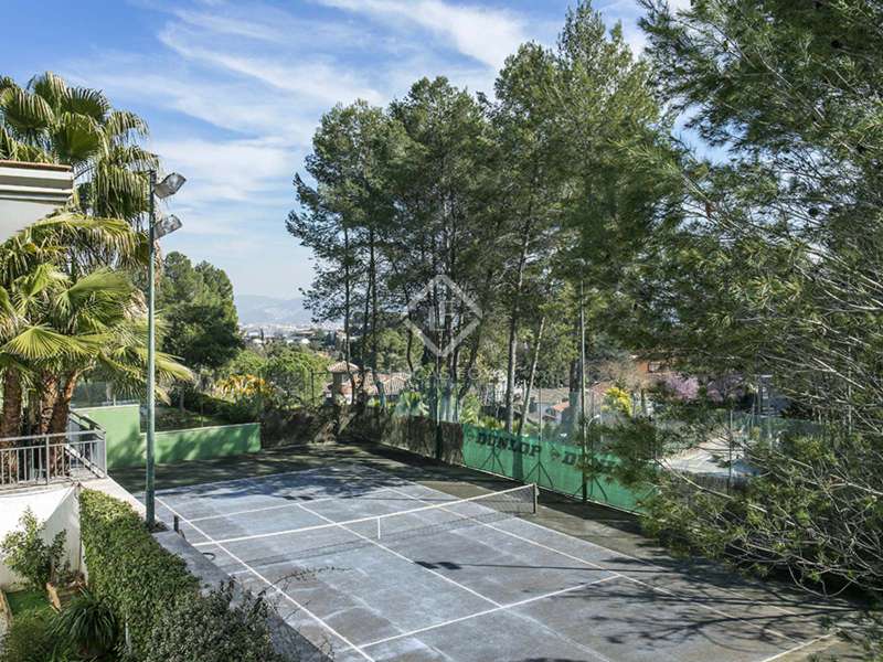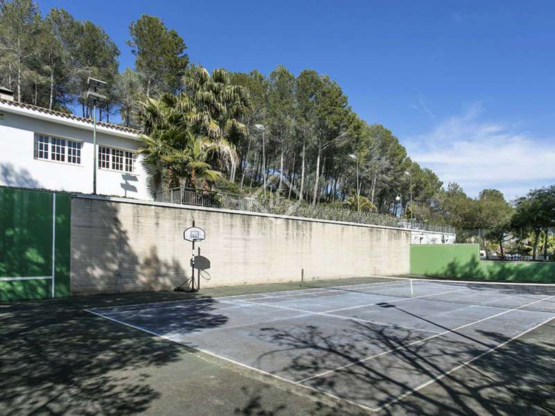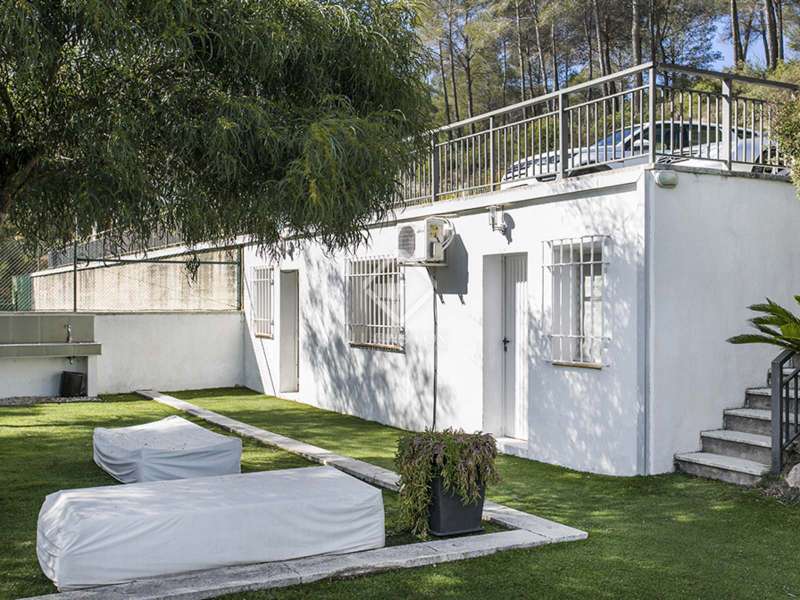 This modern and bright house is located in the residential area of Bellaterra, near Sant Cugat and just 15 minutes from Barcelona. What makes it truly unique is its privileged surroundings: the house is set on more than 10,000 m² of land with oak, pine and palm trees that offer total privacy. The house has an area of 294 m² distributed across 2 floors. The ground floor offers a living-dining room with a large original fireplace, a kitchen with dining area and the master bedroom which has an open bathroom and an entire wall of closets. On the lower floor, also at street level, the house has 2 double bedrooms with en-suite bathrooms and wardrobes, an additional study or bedroom, another full bathroom with a spa bath, laundry room, cellar, storage room and gym. The house was fully renovated a few years ago with the highest quality finishes. In the garden, we find a swimming pool, a service annexe and a recently renovated tennis court. Near another access to the house, there is a concierge area.