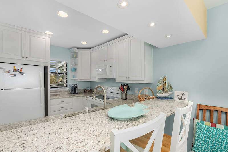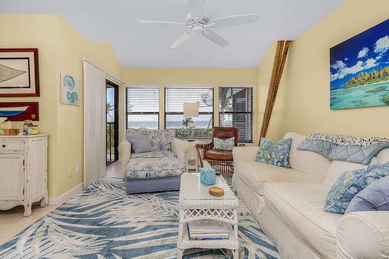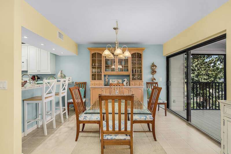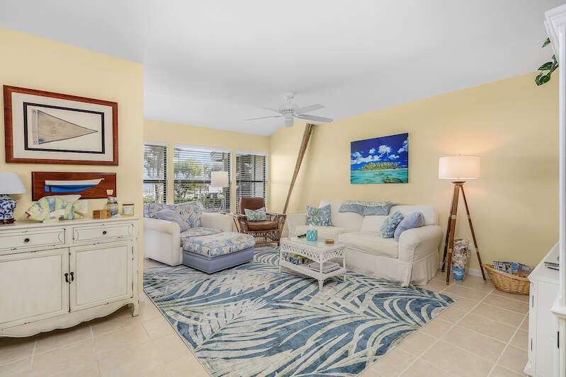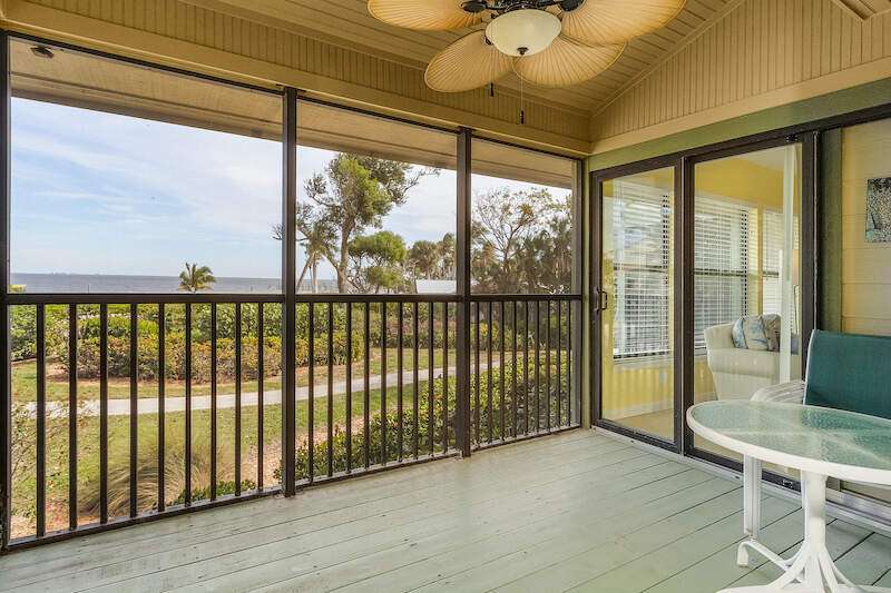 Spectacular unobstructed views of beautiful Charlotte Harbor from all living spaces! Enjoy Florida's resort coastal living at its finest in this beautiful, fully furnished condo in the sought-after B building of Bocilla Island Club in Bokeelia. The updated unit boasts 2 bedrooms, and 2.5 baths, fully remodeled with quartz or granite vanities and new glass shower doors, remodeled kitchen with granite counters, Kraftmaid cabinets, and recessed lights; new interior doors throughout, complete re-piping of water supply lines, vaulted screened porch with beadboard ceiling, and, in 2023, new paint inside and carpeting on the staircase and in the bedrooms. The guest bedroom includes a full-size bed along with twin bunk beds for additional guests. The meticulously maintained grounds include lush landscaping, walking paths with bay views, 2 pools, 2 tennis/pickleball courts, shuffleboard, and a private fishing pier on Charlotte Harbor. New roofs were installed in 2023. There is a boat ramp in the complex and, even though this unit does not come with a boat slip, some slips may be available nearby. There are 2 parking spaces, 1 of which can accommodate a boat, below the unit and storage for your boating & fishing needs. Conveniently located within walking distance to restaurants and Four Winds Marina, a full-service marina. Rentals are approved for 30 days, up to 12 times per year. Flood insurance is covered by the HOA.