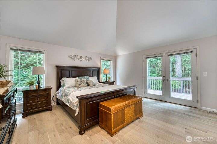 Come see this well-maintained home in private gated community. This airy home offers white oak hardwoods throughout, updated energy efficient windows & new upper deck. Cheery kitchen with warm wood cabinets, granite tops, eating bar, gas cook top, double ovens leading to a family room with built ins. Off kitchen are French doors leading to a covered back deck with plenty of patio space for entertaining. The mature landscaping from the minute you drive up to around back makes for a gardener's paradise. So many Fab rooms to enjoy: formal living & dining, office with French doors, bonus room & Lrg laundry room. Primary suite offers a private deck, 5-piece bath with jetted tub, & walk-in closet. Close to bridge access, uptown & boat launch.