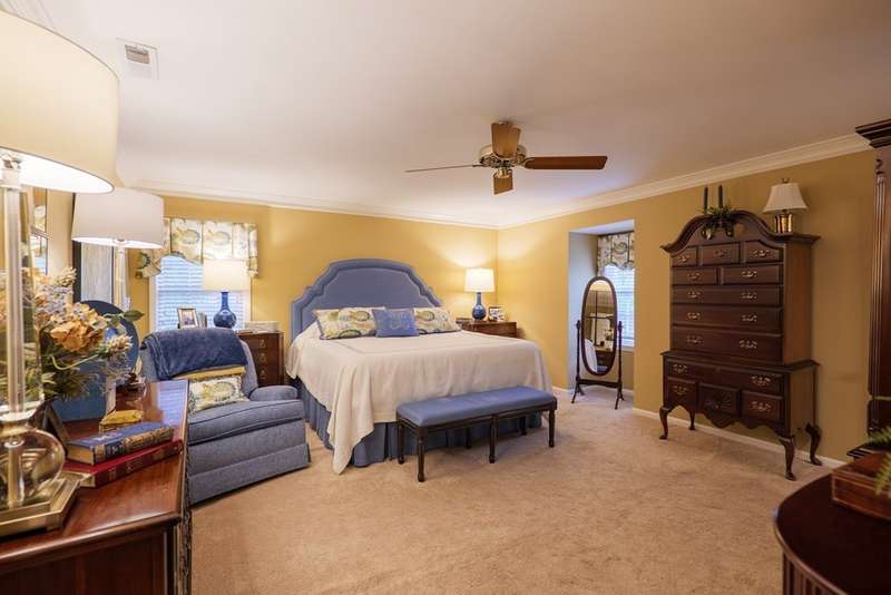 Indulge in the epitome of lakefront luxury at this magnificent brick estate, gracefully situated on 2.13 acres of pristine land in sought after “Cherry Creek Hills.” This 5-bedroom, 3.5-bathroom residence is a sanctuary of refined living, offering meticulously designed spaces that seamlessly blend comfort and sophistication. Formal living and dining rooms provide elegant settings for gatherings, while a cozy den with custom built-ins and a cozy fireplace fosters a warm, inviting atmosphere. A sun-drenched sunroom and dedicated office cater to both relaxation and productivity. The chef's kitchen, a culinary haven, boasts high-end appliances, an ice maker, a beverage refrigerator, and a trash compactor. Step outside to a sparkling pool oasis that overlooks the serene lake, creating an enchanting backdrop for outdoor enjoyment. The meticulously landscaped yard, adorned with vibrant azaleas, paints a picturesque scene. Feed the fish from the newly renovated dock with fish feeder! Recent enhancements include a new roof, a comprehensive alarm system, numerous new windows, fresh paint, and a mosquito spraying system for optimal comfort. A detached building offers ample storage on the lower level, while the upper level features a 700 sq ft heated and cooled game/media room, perfect for recreation and entertainment. A sprawling back porch, thoughtfully designed for dining and seating, presents breathtaking views of the pool and lake, creating an idyllic space for social gatherings and tranquil moments. The home's interior design, marked by its refined finishes and thoughtful layout, harmonizes perfectly with the surrounding natural beauty, making this property a serene and luxurious retreat. Enjoy unparalleled lake views from every angle!