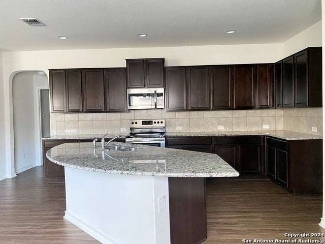 Like new 4 bedroom single story home with loads of features situated in a quite cul-de-sac. Open floorplan with high ceilings. Wood like Vinyl plank in living room and hallways. Huge kitchen with granite counter tops and stainless appliances, center island and breakfast bar. Grand master suite, separate tub & shower and double vanity. New carpet. Water Softener. Covered patio and sprinkler system. Close to Lackland AFB, Sea World, 1604, 151, Costco and other shopping & restaurants, NISD.