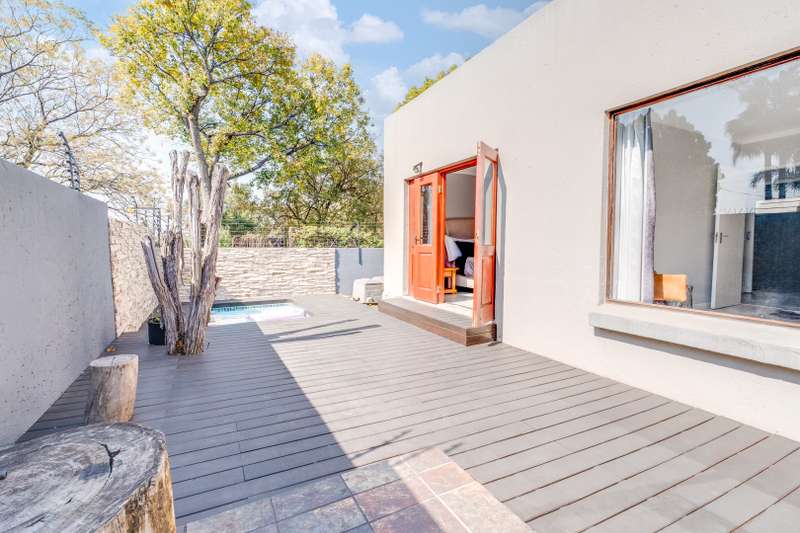 Inviting buyer from 1 599 999. Seller asking more. Stylish 2-Bedroom Townhouse with Splash Pool & Double Garage in Paulshof Nestled in a secure and well-maintained complex in the heart of Paulshof, this beautifully renovated two-bedroom, two-bathroom townhouse offers the perfect blend of comfort, style, and convenience. Step into an inviting open-plan living space where the lounge and dining areas flow seamlessly, creating an ideal setting for both relaxed living and entertaining. The modern, fully renovated kitchen is a standout feature—boasting sleek finishes, ample cupboard space, and quality appliances. Both bedrooms are well-sized, with the master bedroom offering an en-suite bathroom for added privacy and comfort. The second bathroom is stylish and practical, serving both guests and the second bedroom with ease. Enjoy sunny afternoons or tranquil evenings on the spacious covered patio, overlooking a private splash pool and a beautifully decked area—perfect for outdoor dining, lounging, or entertaining
