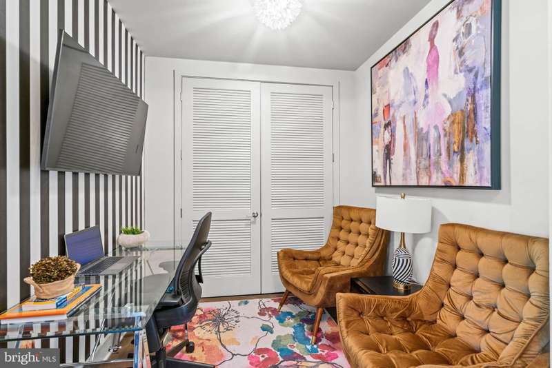 Bold, Eclectic, Unforgettable. Welcome to this STUNNING 2BR/2BA + Den condo at the Brooks in the vibrant Parks at Walter Reed community! Step inside to a bright and colorful open concept living space, bathed in natural light and anchored by oversized glass doors that open gracefully to a private balcony overlooking lush gardens. Summer evenings come alive with live jazz drifting in from the seasonal concert series! There's a chef's kitchen with modern cabinetry, an island with storage and seating for 4, and premium appliances! Both spacious bedrooms have AMAZING walk-in closets, stretched from floor to ceiling, and the den is perfect for an office or hang out space! From the designer lighting and moody hues to the curated textures and luxe finishes, every corner feels like a page out of a European design magazine! Even better, most of the furnishings are available for purchase, so you can simply unpack your suitcases and start living! In-unit w/d and deeded garage parking are included. The building itself feels like a high-end boutique hotel, with elevated common spaces that exude quiet luxury. There is secure access and attentive on-site staff, a beautiful lobby, pristine package and mail area, stylish wide hallways, a secure bike room, club lounge, and roof deck with gas grill. A complimentary one-year membership to the Vale Club, next door, offers access to a full suite of wellness and leisure amenities including a contemporary club room and sleek lobby access, fully equipped gym and yoga studio, a resort-like pool with cabanas and lounges, and a pet spa. The 66-acre, historic Parks at Walter Reed campus has amenities that include an expansive dog park, a Jazz in the Park concert series, and other events on the Great Lawn, Happy Hours and community events on the Plaza, a food truck and variety of restaurants, a Whole Foods, Starbucks, and more! Steps from Rock Creek Park and Capital Bikeshare, close to Takoma Park Metro (0.7 miles), and easy access to commuting arteries across DC as well as to MD, or VA. This is more than a home, it's a vibrant, luxurious lifestyle in one of DC's most exciting and fast-growing communities! For owner-occupant buyers, this home qualifies for the United Bank Welcome Home Program, offering a $10,000 grant towards downpayment and/or closing costs, a minimum downpayment as low as 3%, a below market interest rate, no PMI, and a standard 30 day closing date. Welcome Home!