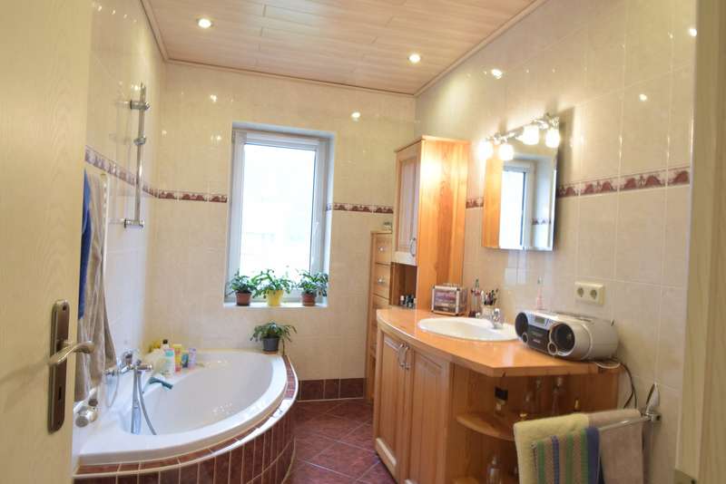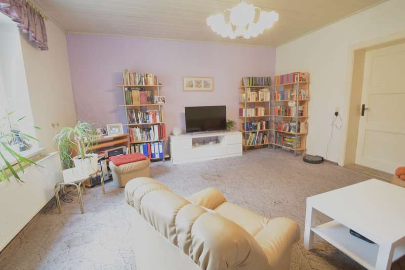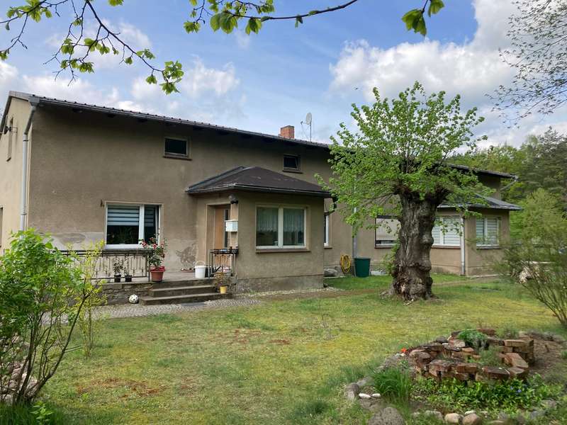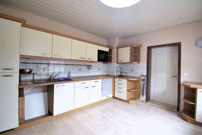 With a total living space of approx. 227 m² and an extensive wooded plot of approx. 31,434 m², this spacious property built in 1950 offers plenty of room and a wide range of potential uses. The two-family house with extension has a partial basement and is in need of renovation. However, it has been gradually modernized over the last few decades, meaning that some important renovations have already been carried out. The property consists of two separate residential units: House 1 with approx. 111m² of living space and approx. 12 m² terrace comprises a light-flooded veranda, two rooms, a spacious kitchen with fitted kitchen and sitting area on the first floor. The floor-to-ceiling tiled daylight bathroom with bathtub, underfloor heating and bathroom radiator as well as ceiling panels with recessed spotlights invites you to relax. There is a room in the attic with great potential for expansion. House 2 with approx. 116 m² of living space and an approx. 12 m² terrace comprises three rooms on the first floor, a kitchen with fitted kitchen, a bright, floor-to-ceiling tiled daylight bathroom with bathtub, underfloor heating and bathroom radiators as well as ceiling panels with recessed spotlights. There is an additional room with a shower in the annex. The Buderus oil heating system is located in the extension. A separate exit leads to the outside area with adjoining spacious workshop building. A room has been converted in the attic, where there is further potential for expansion. On the spacious woodland plot, an old bakery with a fully functional oven has been lovingly converted into a party room with a small bar. A barn with a new roof offers plenty of space for hobbies and other things. The extensive property offers a wide range of options for use and is also suitable for additional projects in addition to the built-up areas. Due to the need for renovation, but also the modernizations already carried out, this is a property that is ideal for buyers who are skilled in their trade or those with creative design ideas. Versatile living solutions, such as multi-generational living, are conceivable. Living in harmony with nature, far away from the noise of the city - dreams can come true here. You are welcome to arrange a viewing appointment to see the possibilities for yourself.