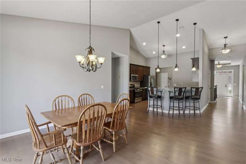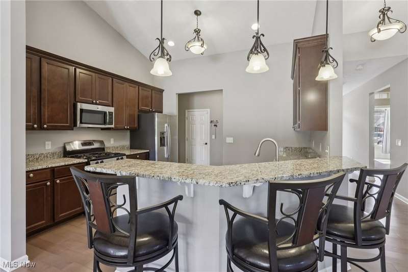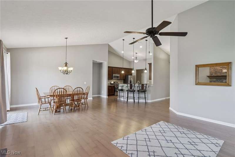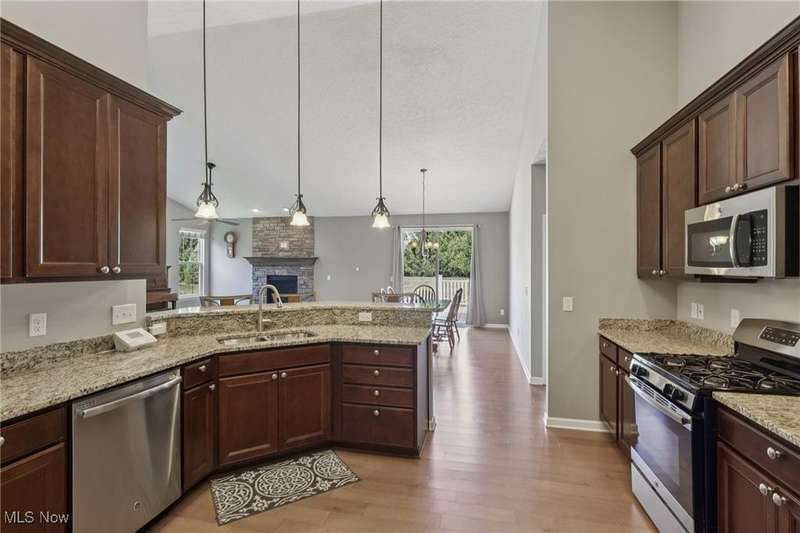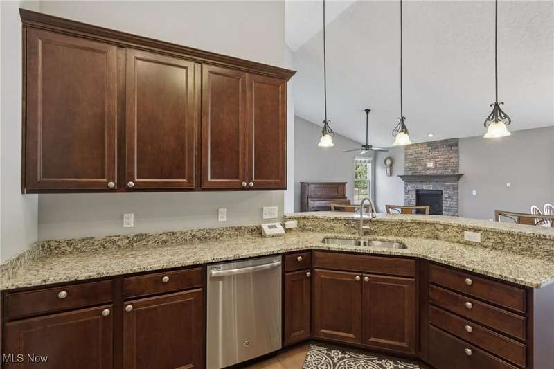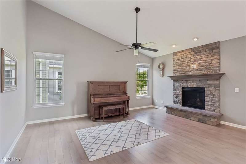 Beautifully Updated 3 bedroom, 3 bath Ranch in The Gardens at Morningside, a vibrant 55+ community, loaded with amenities and maintenance free living. The vaulted main living area is bright and inviting, featuring wood floors, soaring ceilings, and a stone fireplace. The open kitchen includes a wraparound breakfast bar, granite counters, custom cabinetry, and stainless appliances, with an open dining room nearby. The spacious owner's suite offers a large walk-in closet and private bath with double vanity, tiled shower and tub. Two other generous sized bedrooms share the hallway full bath. The finished lower level extends your living space and includes a full bath. Outside, enjoy outdoor living on the large maintenance free deck with a sun setter awning to keep you comfortable and dry. Enjoy the beautiful green views with no rear neighbors. Community amenities include a fabulous clubhouse with an indoor pool & fitness center, an outdoor pool, pickle ball courts, a putting green, walking trail and beautiful scenic ponds. Fall in love with this maintenace free and thriving community waiting for you to move in and enjoy your home and leisure life!
