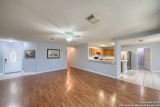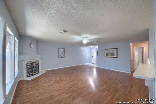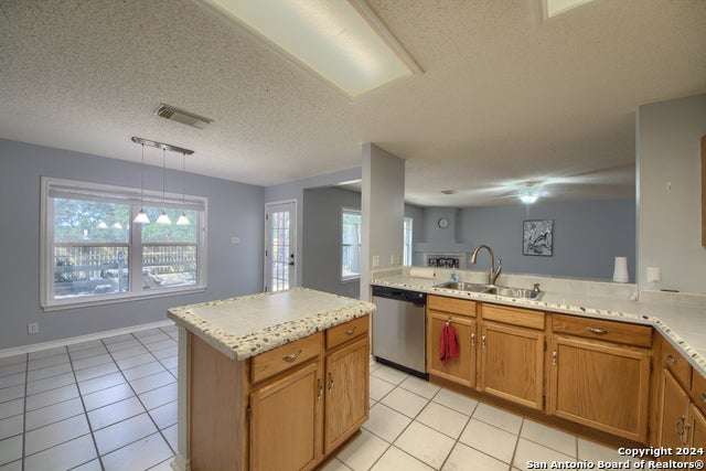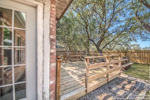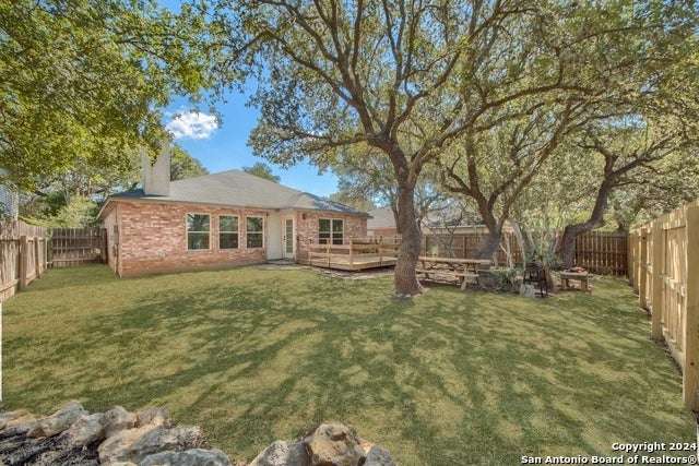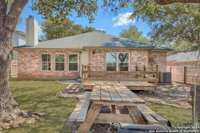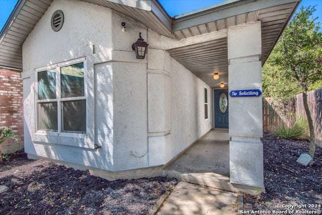 Welcome to this immaculate 3 Bedroom/2 Bath/2-car garage home in the tranquil neighborhood of Kingswood Heights. Nestled between huge oak trees and no neighbors behind, this one-story beauty has been well loved and ready for its next family! The neighborhood is one block from the middle school and one block from the elementary school! It sports wood laminate flooring in the living area, ceramic tile in the kitchen & wet areas and carpet in the bedrooms. The unique personalized, hand crafted kitchen countertop is the center of attention and topic of conversations at social gatherings! From its spacious primary suite to the two secondary bedrooms, this little gem is the perfect first-time homebuyers dream! Relax in the evenings on the back deck enjoying the mature trees & weekend cookouts with family and friends. Work bench and storage racks in garage, dusk to dawn front & back yard lighting, underlit kitchen cabinets, water softener and more! Convenient to JBSA Lackland, UTSA, medical, Chase, dining, shopping & entertainment. Hurry for this one!