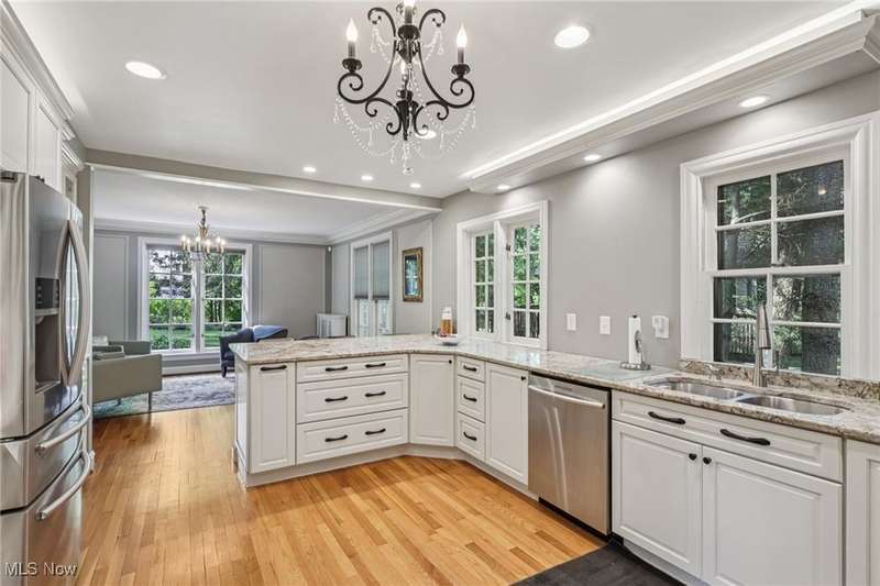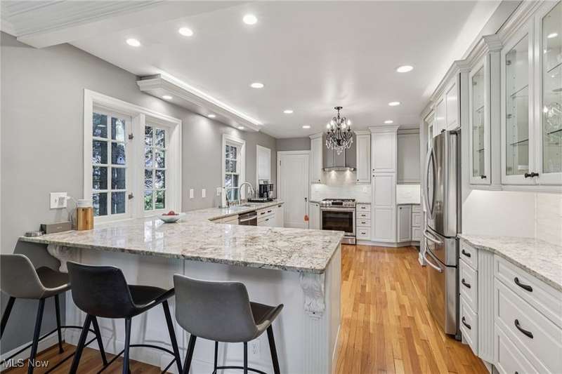 Classic and elegant, this french inspired Normandy is prominently located in a desired location in the Village of Bratenahl. This wonderful home has beautiful architectural detailing including intricate plaster moldings, hardwood floors, and leaded windows. The elegant entry foyer opens into the grand living room which features a magnificent fireplace and french doors. The formal dining room area is open to the completely renovated kitchen which is spectacular! There are granite countertops, abundant cabinetry, high end stainless steel appliances and a breakfast bar. There is even a library/den on the main floor which opens onto the park like yard. The expansive second floor has 4 bedrooms and 3 full bathrooms including a luxurious primary suite. Here you will find a completely updated bathroom with soaking tub, stall shower, and double sinks. There is a walk-in closet and a gracious bedroom area. The finished lower level club room has a spectacular stone fireplace mantel and there is even a recording studio for the music enthusiast. This spectacular home has a two car attached garage, gated driveway, and beautiful setting. Ideally located and a short walk to the sought after Shoreby Club, this is a truly special property.