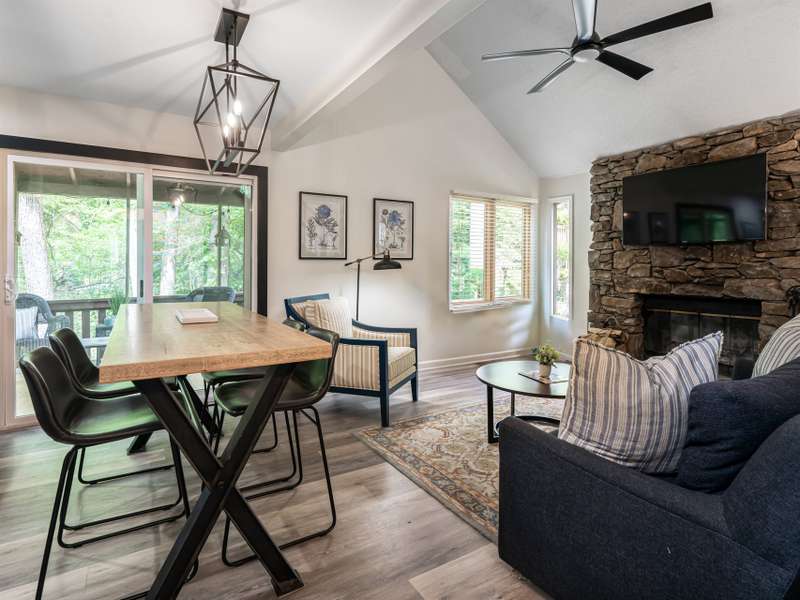 Fully updated from top to bottom over the past two years, this immaculate 3 bedroom/2 bath home is perfect as a primary residence or short-term vacation rental. Enjoy a brand-new kitchen, bathrooms, laundry, flooring, lighting, roof, hardboard siding, gutters, Trex deck, water heater, HVAC (including ductwork), entry door, sliding glass door, and more (see feature sheet for full list). Vaulted ceilings and an open floor plan create a light-filled, airy space anchored by a cozy wood-burning stone fireplace. Relax outdoors on the roomy screened-in porch. HOA covers lawn maintenance, making this a true lock-and-leave home. Ideal for one-level living potential and located just 5 minutes from the Asheville Airport. Don't miss your chance to see this stunning Wildwood Gardens home!