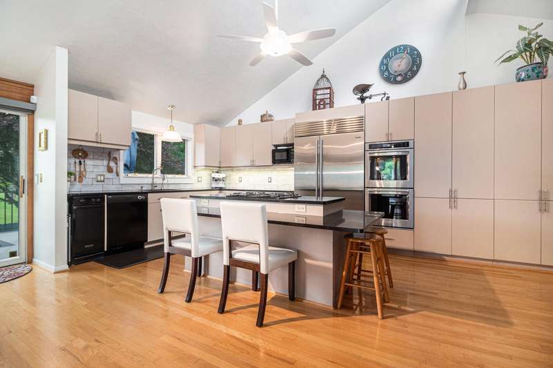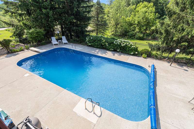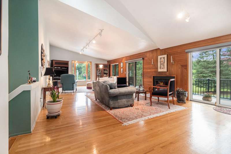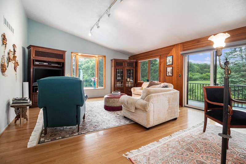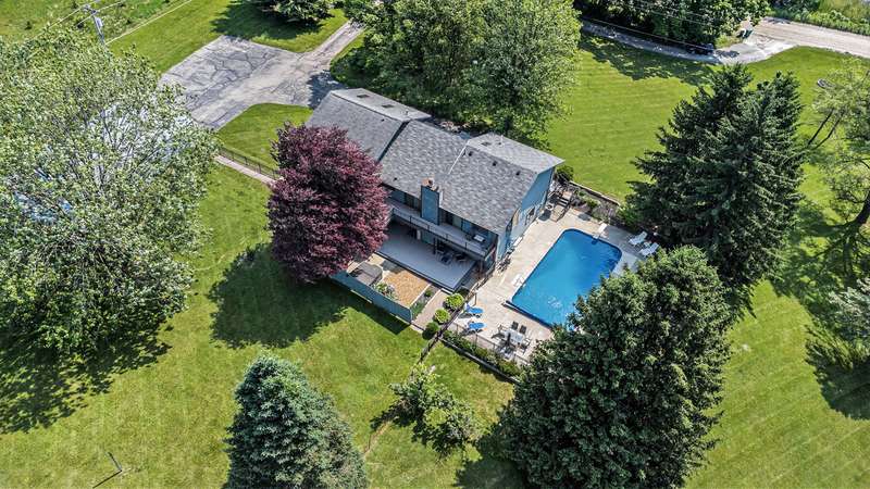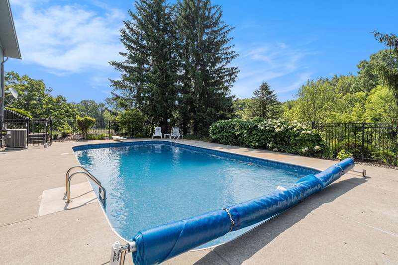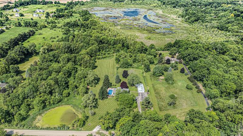 This remarkable bi-level home in Dexter Township has it all - over 10 acres of peace and privacy, an incredible location just minutes from downtown Dexter and two Metroparks, serene lake views, a separate apartment ideal for guests or rental, and the perfect outdoor entertaining space you'll enjoy all summer long! A winding drive leads you to the home and barn, with parking for 3+ vehicles, two horse stalls, tack room, and electricity. From the low-maintenance front deck, enter the vaulted foyer leading into the open and light-filled upper level with gleaming wood floors. A spacious living room with gas fireplace, MCM-style wood paneling, and remote-controlled blinds flows effortlessly through two door walls onto a lighted-railed deck, perfect for morning coffee, evening gatherings, or watching the deer, sandhill cranes, and rabbits roam the hills. The chef's kitchen, recently updated, boasts abundant cabinetry, granite counters, a cooktop-equipped island with breakfast bar, Sub-Zero refrigerator, double ovens, and newer appliances. Adjacent, the dining room features a wet bar and display cabinets - ideal for hosting friends and family. Venture up a half-flight of stairs through a mahogany door to discover a sun-lit parlor/game room complete with its own wet bar, half bath, skylights, vaulted ceiling, and direct deck access - plus a spiral staircase leading to the side yard. At the other end of the home, retreat to the primary suite, where custom built-ins frame vaulted ceilings, two generous closets (one walk-in), and an ensuite bath with dual vanity. The walkout lower-level offers bright daylight windows with tranquil countryside views in each of four additional bedrooms, all sharing a renovated full bathroom. You'll also find a cozy family room, generous laundry room, and a utility/storage room. Practical comforts include a natural-gas on-demand water heater, owned water-treatment system, and two septic tanks. Through the laundry room or its own separate entrance, a lower-level apartment is an ideal place to welcome guests or continue renting it as an Airbnb with income of up to $2000/month. This space has its own living room with door wall to a private patio, full kitchen with dining area, bedroom, and updated full bathroom with combo washer/dryer. Outside, the perfect summer day awaits! Take a dip in the in-ground pool, lay out in the sun, enjoy a nature walk or horseback ride through 10 acres, or visit the nearby Metroparks. Land division may be possible, subject to Township review and approval. This unique property seamlessly blends versatile living spaces with resort-style amenities - schedule your private tour today!