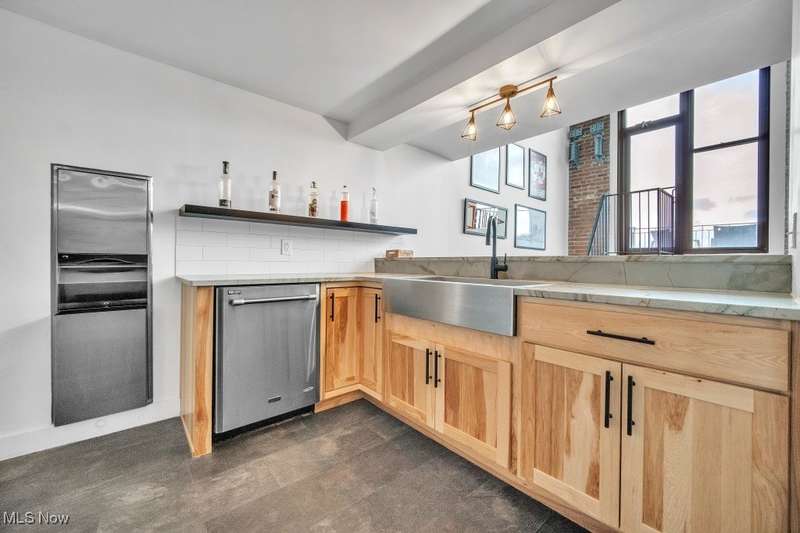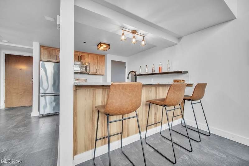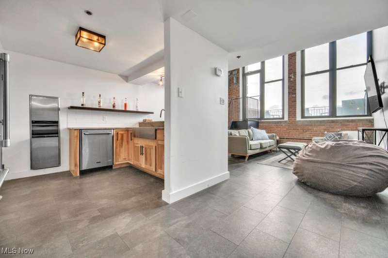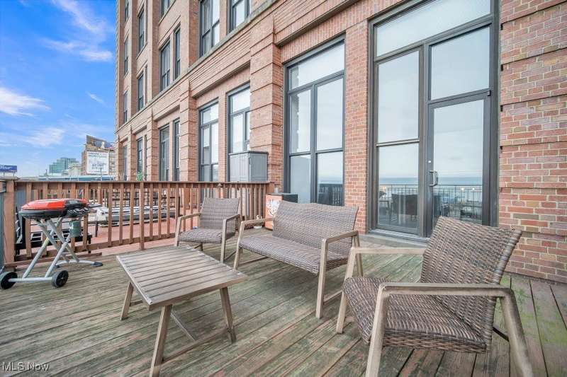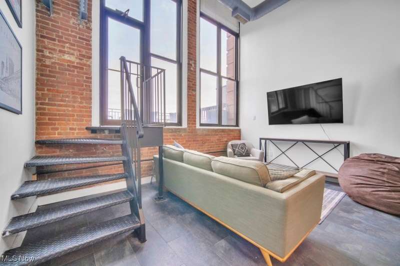 Experience the best of downtown Cleveland living in this beautifully updated, fully furnished condo! Relax on your private patio - one of only seven in the building - while enjoying stunning views of Lake Erie. Step inside to a stylish kitchen featuring new cabinets, granite counter tops, stainless steel appliances and a convenient breakfast bar. Laundry hookup can be found under the stairs in the kitchen. Vaulted windows and expansive windows fill the space with natural light while showcasing stunning lake views. Upstairs, the lofted bedroom and bathroom provide a cozy yet open feel. This condo offers fantastic amenities, including a rooftop deck with unbeatable views of downtown Cleveland, fitness center and laundry room. Plus, you are just steps away from the Browns Stadium, East Bank of the Flats, restaurants, grocery stores and more! Don't miss out on this incredible opportunity - schedule your showing today!