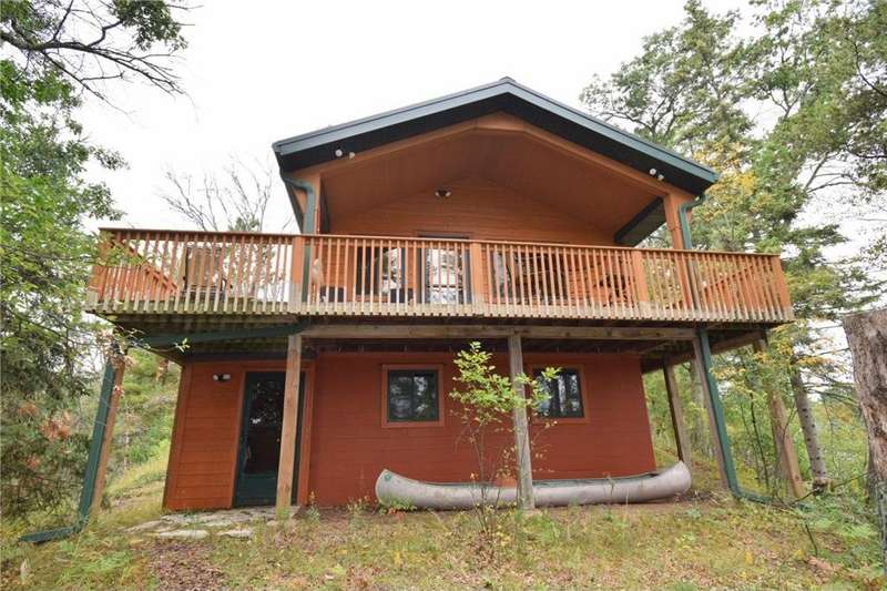 Your very own Northwoods oasis awaits! Rare peninsula setting on crystal-clear Mallard Lake boasts over 750 feet of level sand frontage & 1.5 acres of privacy tucked in the woods! The well-built 2 BR, 2 BA cabin is thoughtfully updated, with a remodeled main floor by a highly regarded local builder. Selling turn-key w/all furnishings & more! Vaulted pine ceilings, cozy wood stove, spacious great room, covered lakeside porch or the wraparound deck & stunning panoramic views. Walkout basement with two bedrooms, a half bath, and a family room all ready for finishing to your style. Lakeside storage area off the bsmt. keeps all your water toys close at hand. Upgrades include LP Smart Siding, gutters, steel roof, Andersen windows, LP forced air w/central air, updated electrical, newer sand point well, newer wood stove. A one-of-a-kind property—a charming cabin on a peninsula lot you simply can’t duplicate today! Close to North Sand Lake, Voyager Village amenities, and UTV/snowmobile trails!