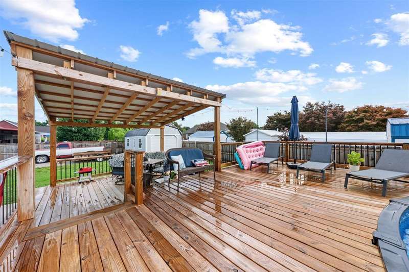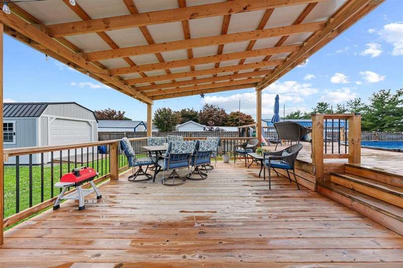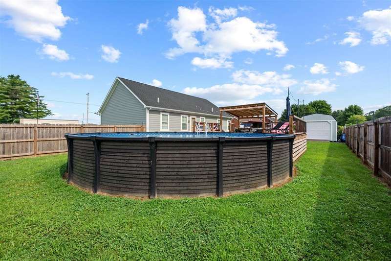 This 3-bed, 2-bath home offers 1,548 sq ft with a split floor plan and open concept layout. Features include a 2-car garage, built-in drop zone, and a privacy-fenced yard. Enjoy a new 30�¢?? pool with a two-tier deck (partially covered), plus a new 12x24 storage shed. Located close to schools and amenities, this home is move-in ready and beautifully kept.