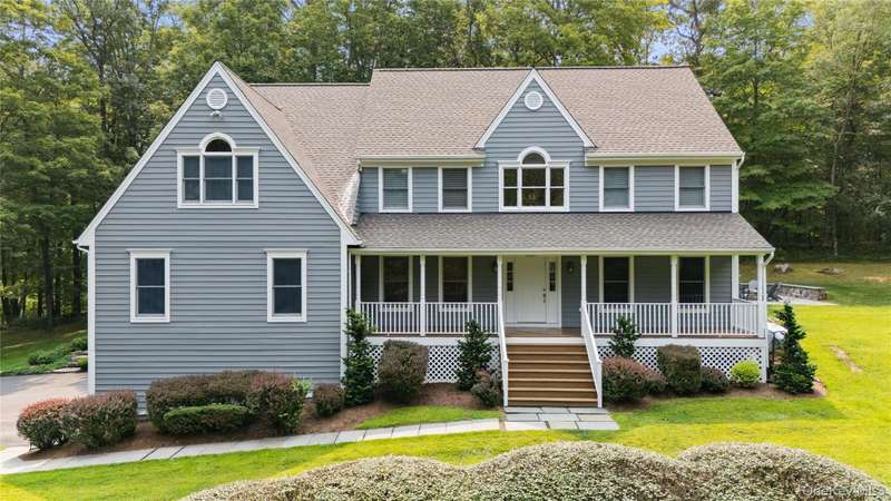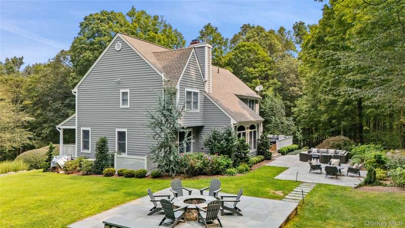 Tucked away on a peaceful cul-de-sac, a long, tree-lined driveway sets the tone as you approach this 4-bedroom, 3.5-bath colonial set on 4 private acres in the award-winning Katonah-Lewisboro School District. This home offers a welcoming front porch, a 3-car garage, and an ideal blend of space, comfort, and privacy. The main level features a large kitchen opening to an expansive family room with open-concept flow, perfect for everyday living and entertaining. Upstairs, the oversized primary suite includes generous closets and renovated primary bath. Three additional bedrooms each feature direct bathroom access, providing comfort, convenience, and privacy. The lower level offers an unfinished basement with potential for customization, whether for recreation, fitness, or home office space. Outdoor living includes a spacious deck and recently completed patio with fire pit and sitting area, all surrounded by natural privacy. Don t miss this exceptional opportunity to make this beautiful pr