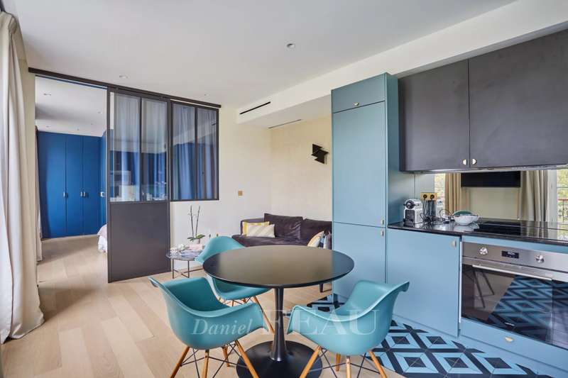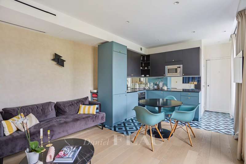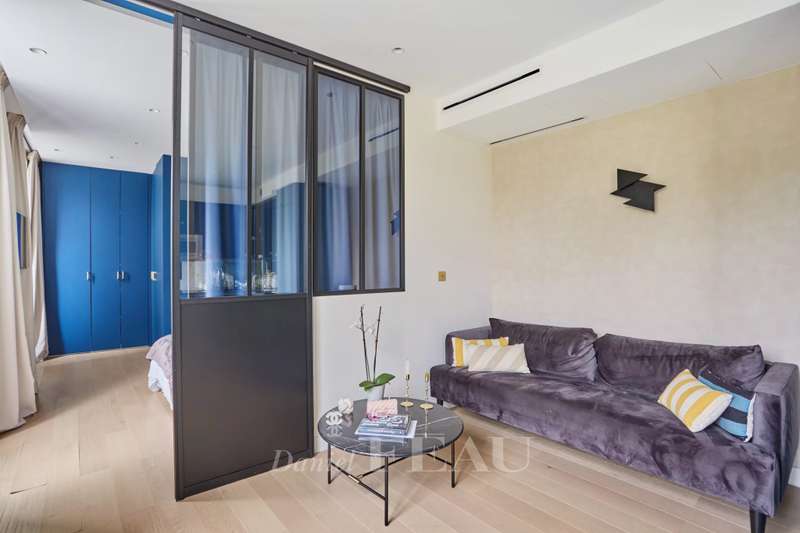 On the third floor of a building without a lift, a 34.76 sq.m (374 sq.ft) air-conditioned apartment, sold occupied (Civil Code lease, rented furnished at €2,250/month). It comprises an entrance hall, a living room with an open kitchen, one bedroom, a shower room, and a separate toilet. A cellar completes this property.