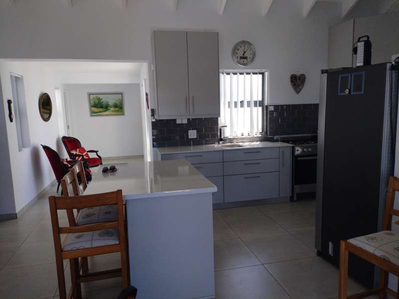 Step into comfort and convenience in this meticulously maintained 3-bedroom home. A mere 300m walk from a swimming beach. Priced right to be a fast seller. Property description: The spacious master suite boasts ample closet space and a luxurious en-suite bathroom featuring a wheelchair-accessible, walk-in shower with seating and a remote-controlled bidet. Double basins for his and her comfort. Two additional guest bedrooms share a full, accessible family bathroom. The heart of the home is an open-plan kitchen, showcasing stunning starry white granite countertops and a convenient prep sink. The adjacent scullery/laundry provides ample space for all your appliances. Relax and entertain in the open-plan living area, which flows seamlessly onto a private, covered patio. This cozy outdoor space, complete with a built-in fireplace and roll-up canvas blinds, ensures year-round enjoyment. Enjoy modern conveniences like sunblock blinds in all bedrooms, a 5kVA inverter, installed Wi-Fi, and prepaid electricity. Active in the Local Market: Chas Everitt has a strong presence in St Helena Bay, dealing with a wide range of properties, including residential homes, vacant land, and properties within estates. We handle sales of various property types, from affordable plots to luxury beachfront homes. Area Expertise: We demonstrate knowledge of the St Helena Bay area, including its various neighborhoods like Britannia Bay, Shelley Point, and the Golden Mile. We provide information about the local market trends, such as the increasing demand for properties in the area. Call us today for all your property needs!