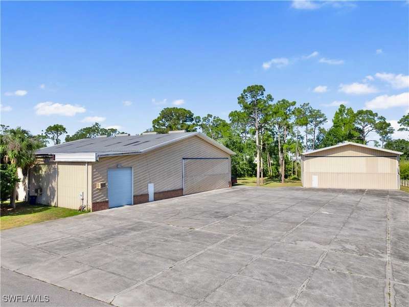 One-of-a-Kind 30-Acre Ranch with Private Runway, Equestrian Facilities & Resort-Style Living. Discover the ultimate blend of privacy, space, and adventure on nearly 30 acres just minutes from Historic Downtown Fort Myers. This extraordinary estate is a rare opportunity, offering a lifestyle few can imagine, with a private runway, expansive equestrian amenities, and a luxurious 8,000+ sq ft home. The main residence is thoughtfully designed for both everyday living and grand entertaining. With six spacious bedrooms, including a private mother-in-law suite, an elevator, and an open-concept kitchen and great room, it provides comfort and convenience at every turn. Step outside to your own private oasis: a resort-style pool and spa set within a two-story screened courtyard surrounded by natural stone, covered patios, and sweeping ranch views. Pilots will appreciate the property's private airstrip, providing direct access for aircraft and a seamless fly-in, fly-out lifestyle. Car enthusiasts and hobbyists will find endless flexibility with three large storage buildings, including one 100-foot structure with six bays and an apartment, another with four bays, and a third 89-foot building with six more bays, perfect for RVs, planes, helicopters, car collections, or equipment. Equestrians will find everything they need: a 15-stall horse barn with a loft, attached one-bedroom unit and workshop, two riding arenas, and a round pen. The land is fully cleared, fenced, and impeccably maintained, ideal for trail riding or simply enjoying peaceful country living. As an added bonus, this offering includes a residential lot in the exclusive Pine Shadows Air Park, one of Southwest Florida's premier aviation communities. Whether your passion is flying, riding, or simply living large with room to roam, this unique ranch delivers it all. A true sanctuary of freedom, functionality, and luxury.
