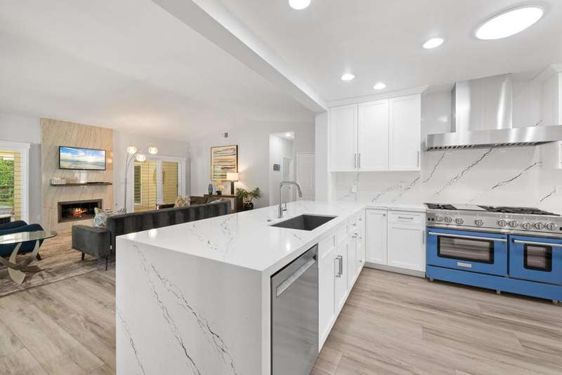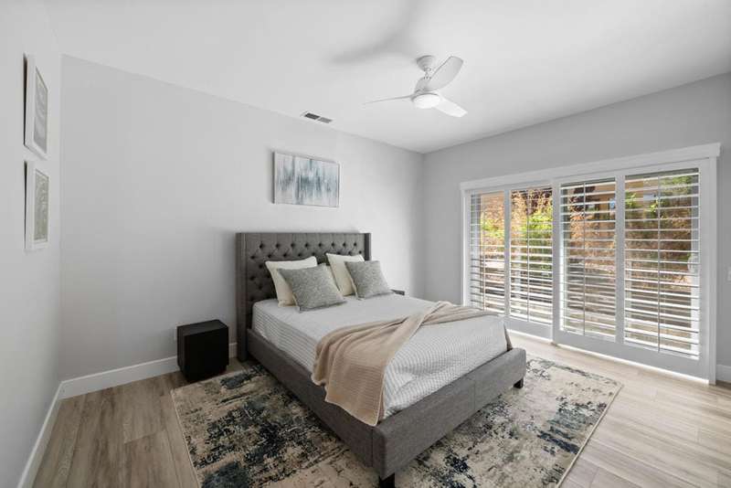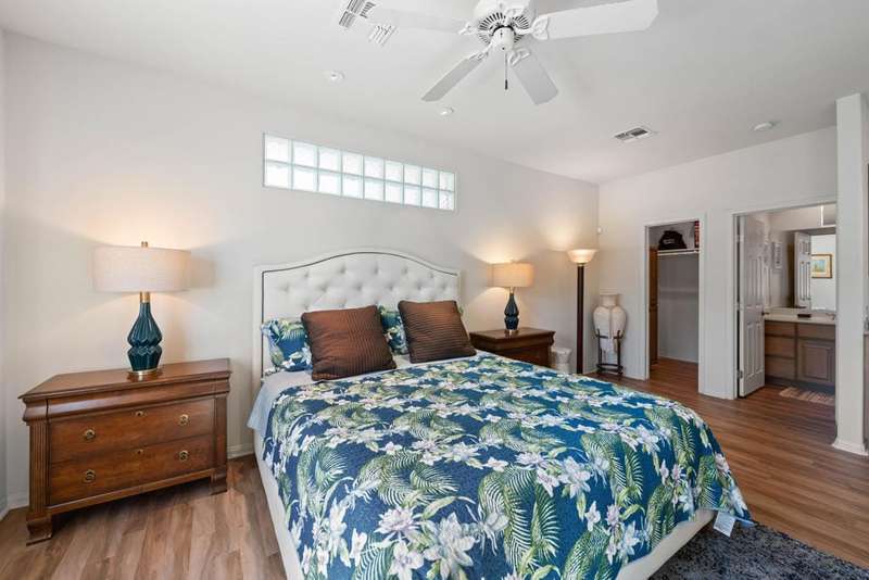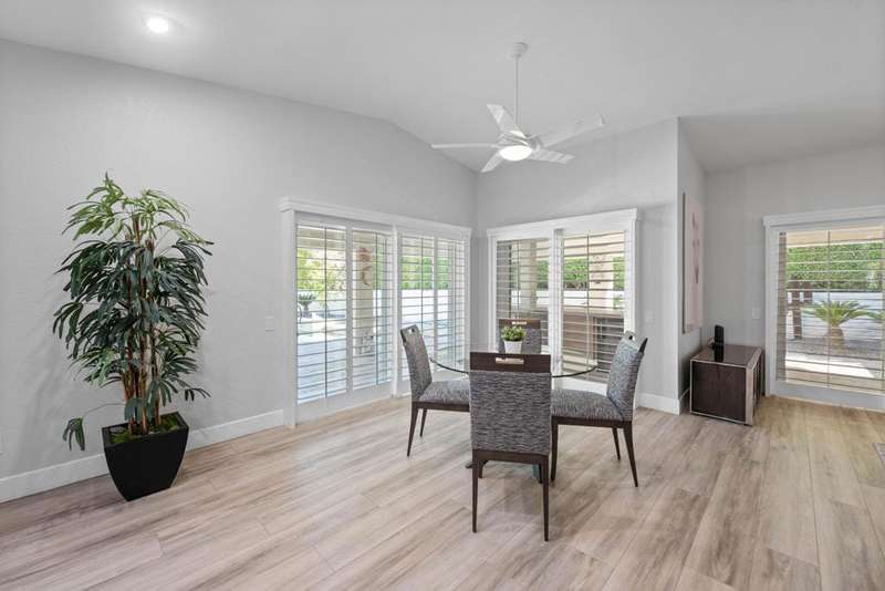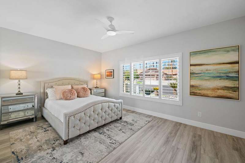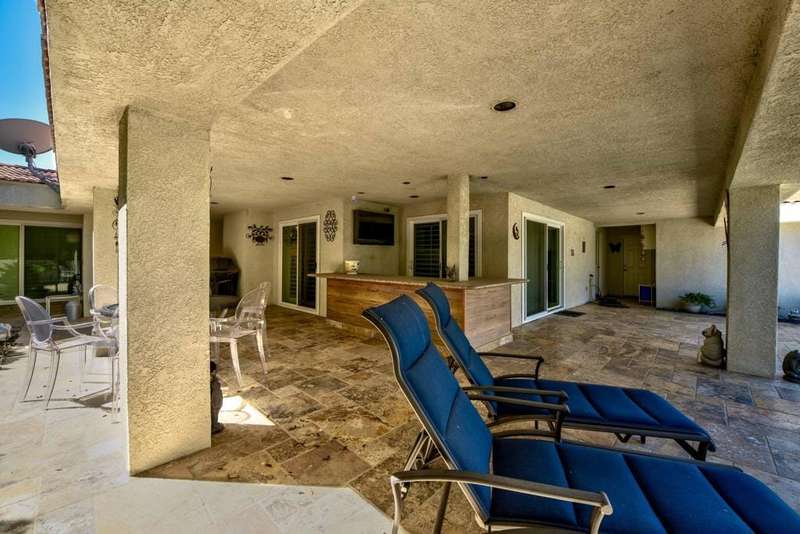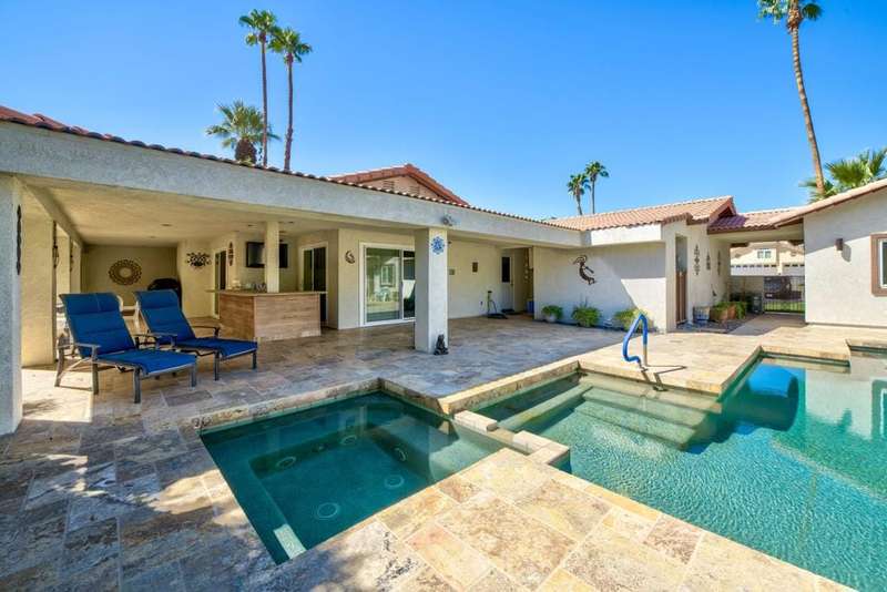 Located in a cul-de-sac close to the Avondale Clubhouse and golf course, this prime location features a home that has been completely modernized. Luxury and comfort combine to create the ultimate in Desert Living. The interior features an open, airy floor plan with the highest quality details throughout. The DREAM Kitchen featuring a handcrafted professional BlueStar 48'' cooking range with double ovens and griddle, custom designed cabinets and sleek CAMBRIA Quartz countertops with a Waterfall edge and counter seating is centrally positioned for easy meal prep and entertaining. Gencore luxury Vinyl flooring, custom plantation shutters on energy efficient windows and sliding doors, California Closet storage with built-ins and the list goes on capturing details showcased throughout the interior. Relaxation is key and enjoyed in the living/dining area featuring a wet bar, wine cooler, large seating area with floor-to-ceiling quartzite gas fireplace and multiple sliding glass doors for easy access to the outdoors. The Primary bedroom is private with an exquisite ensuite featuring unique Blue Bahia granite countertop, frameless glass walk-in shower and freestanding tub with waterfall filler all designed to capture a Spa-like experience. Two spacious guest bedrooms in the main house have been beautifully enhanced and share a sleek ensuite with custom finishes. Furnishings are available. The private, freestanding Casita offers almost 500 sq ft of comfort with the convenience of a kitchenette and sitting area that is perfect for family, guests or home office. The 2 + golf cart garage features epoxy flooring, Universal EV charger and custom cabinetry with lots of storage. The low maintenance outdoor living space allows more time for relaxation around the sparkling salt water pool, spa and expansive covered patio designed for easy entertaining with family and friends. Social amenities include dining, fitness, sport courts, doggie parks and social activities for all to enjoy within the beautiful grounds and rich history of prestigious Avondale Country Club.