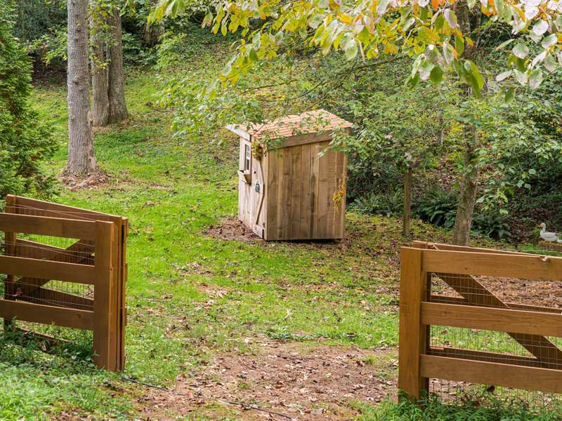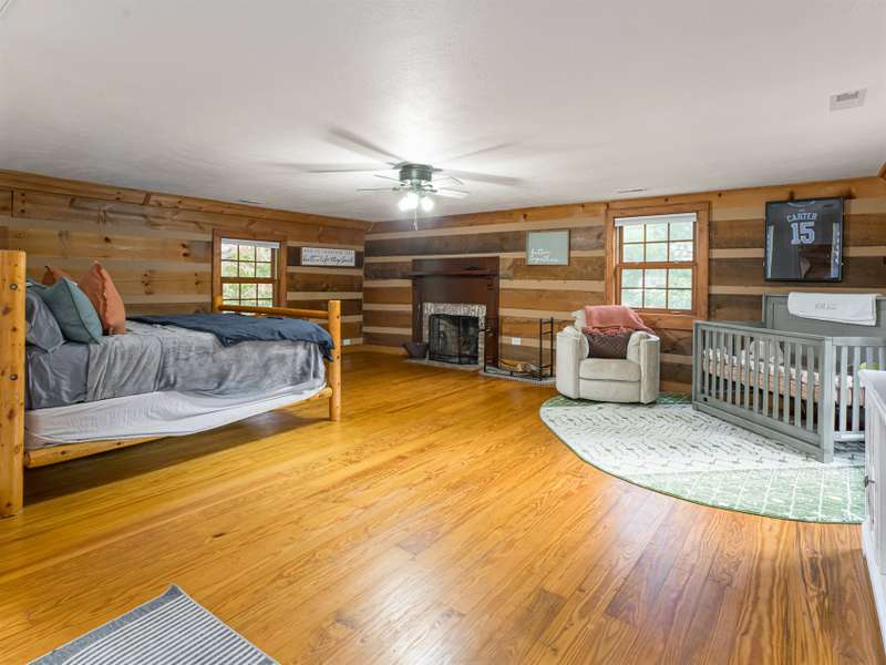 Welcome to this charming log cabin home, uniquely designed and ready for its new owners. The property features a lovely covered porch, a shed, a chicken coop, and a newly fenced backyard, creating a cozy and inviting atmosphere. Inside, you'll find a gas fireplace in the living room and a wood-burning fireplace in the expansive primary suite that occupies the entire second floor?perfect for those cozy winter nights. With recently updated appliances, fresh paint, and more, this home is move-in ready. Enjoy the spacious screened-in back deck and the large covered front porch, offering a perfect blend of a woodland retreat while being just 10 minutes from downtown Asheville and 15 minutes from Fletcher's Airport Road. Let your imagination run wild with the possibilities in this beautiful setting!
