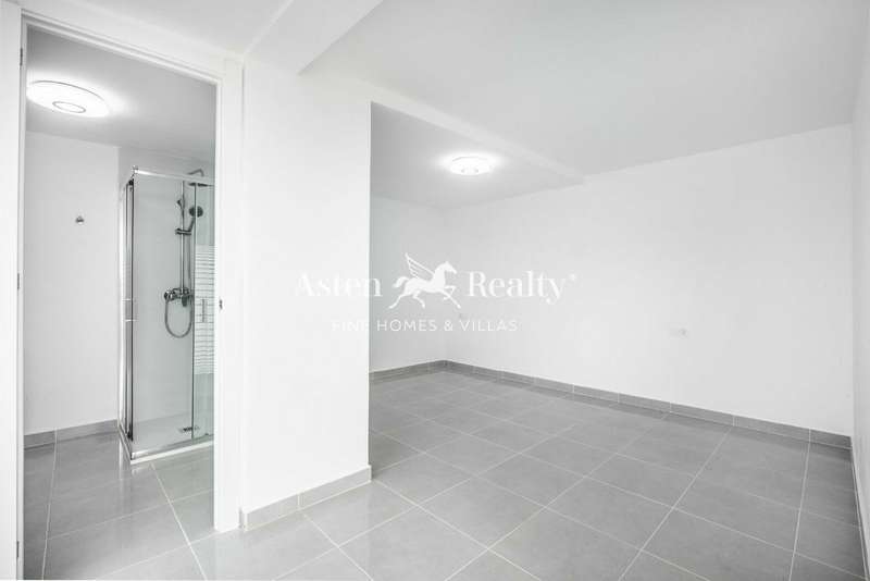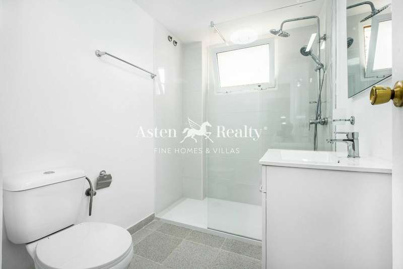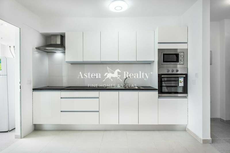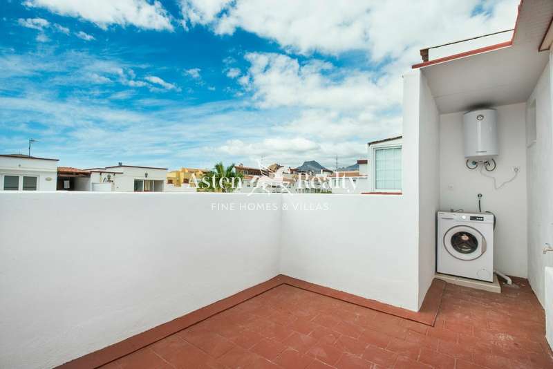 On the main floor there are two bedrooms, a full bathroom and a cosy living-dining room with an open-plan kitchen, which is brand new and equipped with state-of-the-art appliances such as a dishwasher, oven, microwave, fridge-freezer and ceramic hob. On the upper floor is the master bedroom with en-suite bathroom, which opens onto a large roof terrace, perfect for enjoying the sun and sunsets, and which also has a practical separate laundry area.