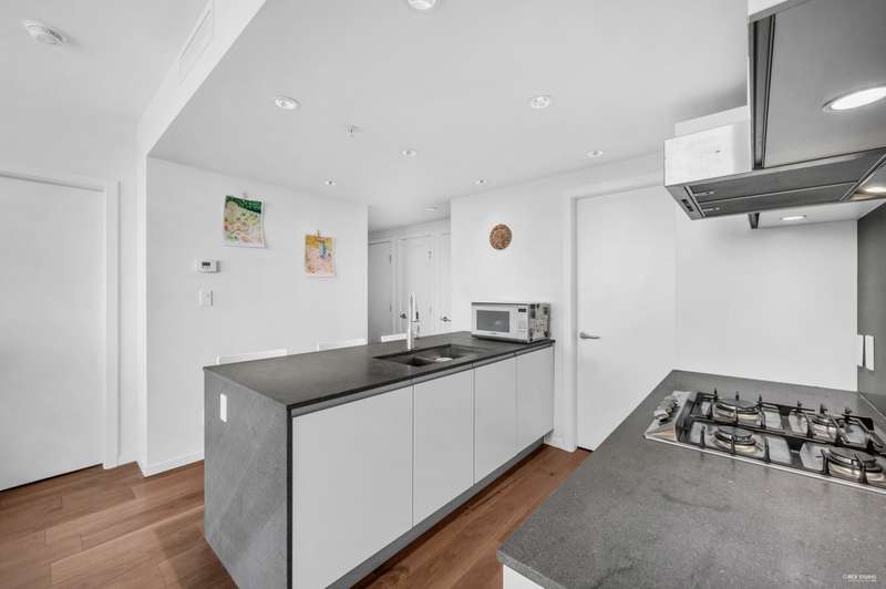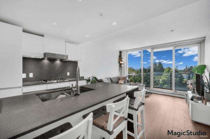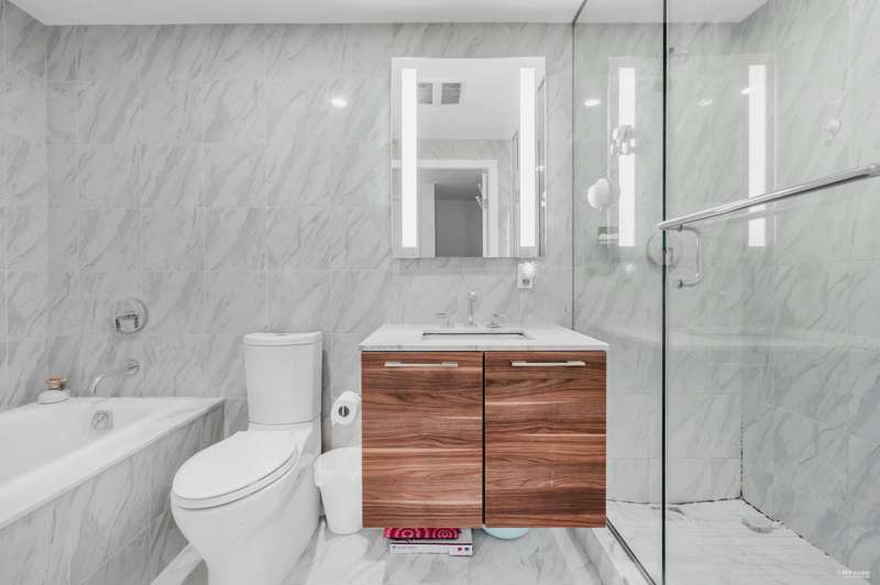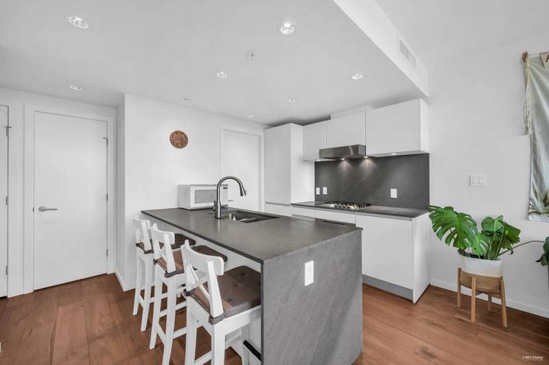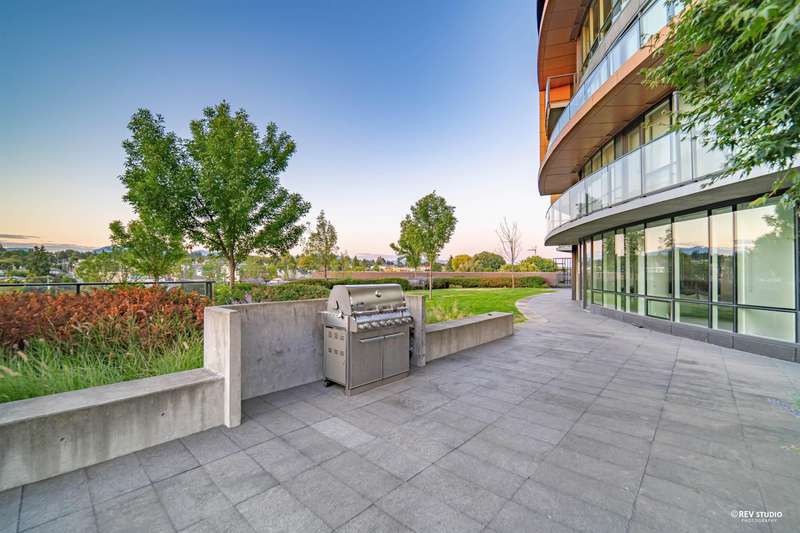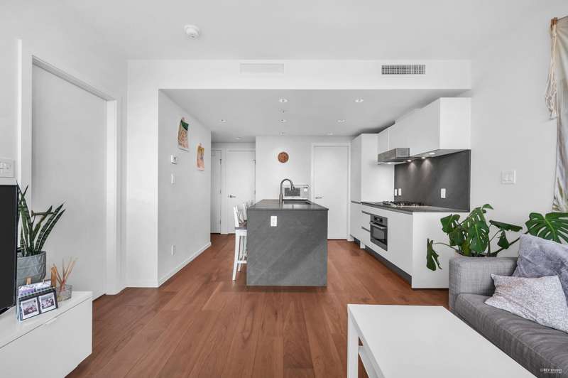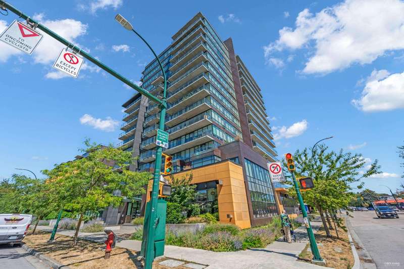 Welcome to this well-designed 1 bed + flex, 1 full bathroom, 1 parking and 1 locker, 604 sqft home in a concrete high-rise offering 24-hour concierge and full amenities including a modern fitness centre. Located in a sought-after school catchment, this home is steps to top-ranking elementary and secondary schools. Enjoy ultimate convenience-walk to T& T Supermarket, banks, shops, cafes, and Marine Gateway SkyTrain station. Quick access to Richmond, YVR Airport, and downtown via Granville or Cambie corridors. A perfect blend of lifestyle and location! Open House ths Sunday Sept 14th 2-4pm. See you soon!
