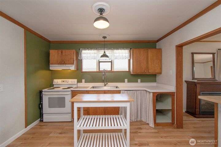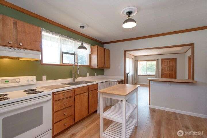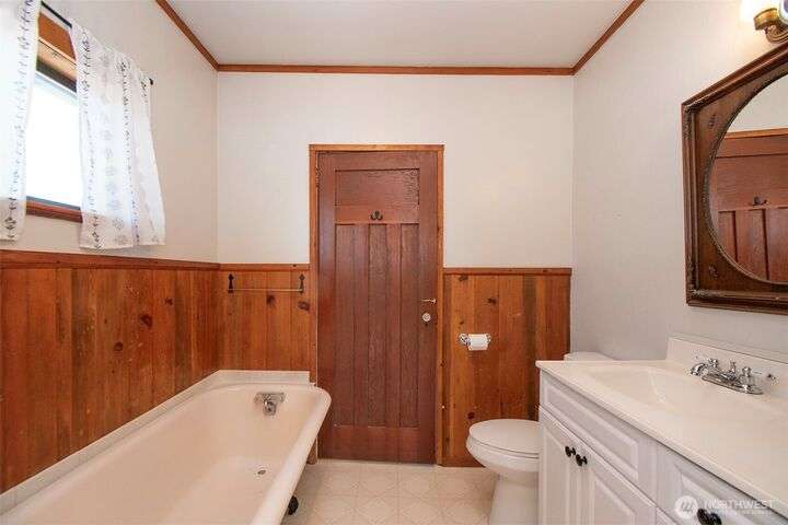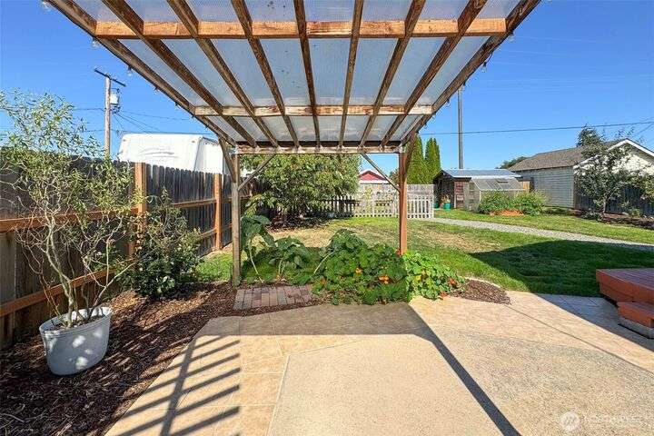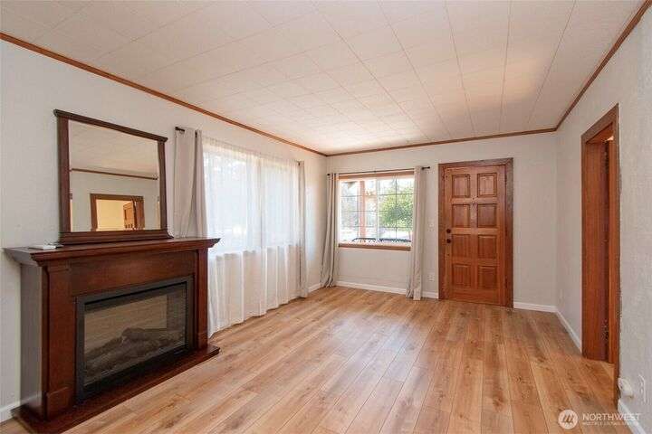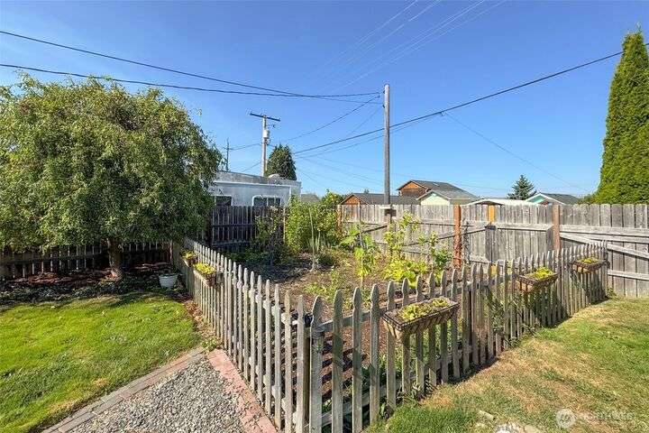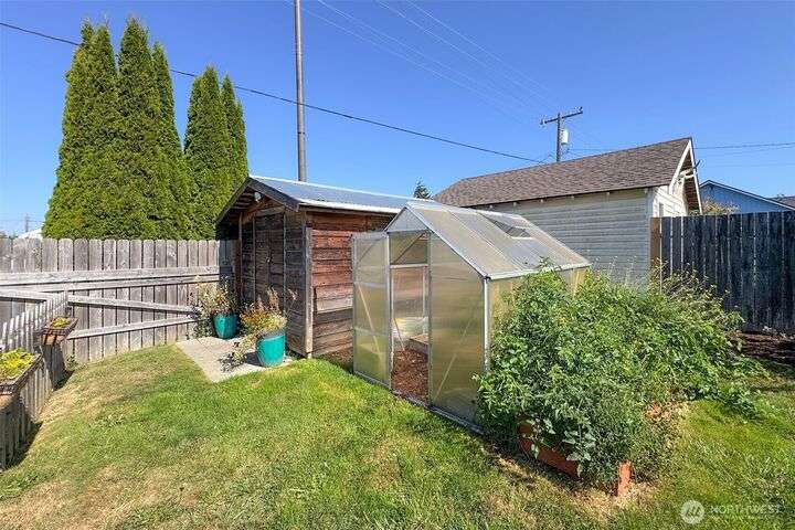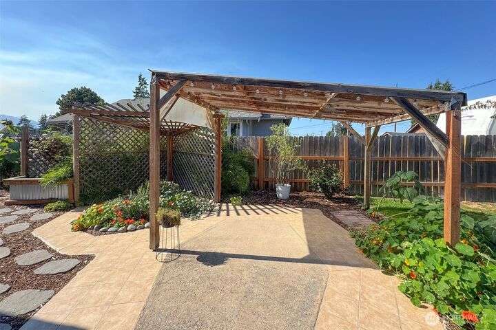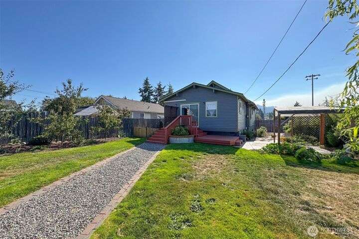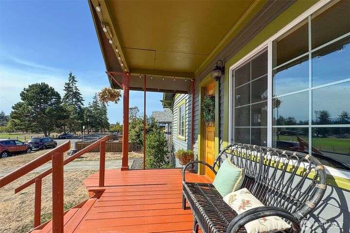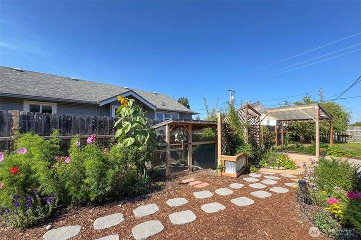 Adorable 3 BD/1 3/4 BA cottage situated on a hill looking out over the green space of Shane Park with climbing gym and baseball diamonds and the Olympic Mountains rising majestically in the background. Newer wood flooring throughout the home with an electric fireplace in the living room. A claw foot tub adds vintage touch to bathroom. The kitchen has a breakfast bar and center island. The front porch overlooks the park and mountains. There is a picket fenced garden, greenhouse, shed, chicken coop, fruit trees and a gazebo among the flowers for outdoor dining in the back yard.