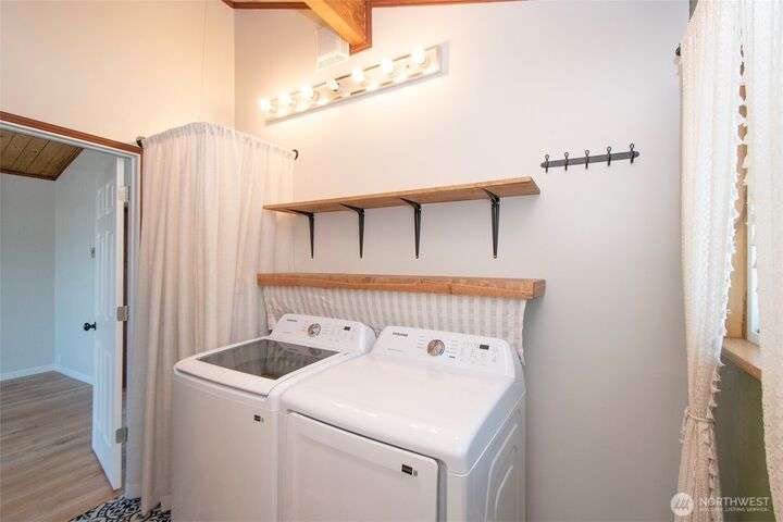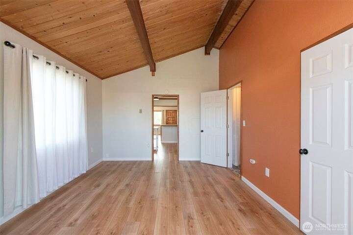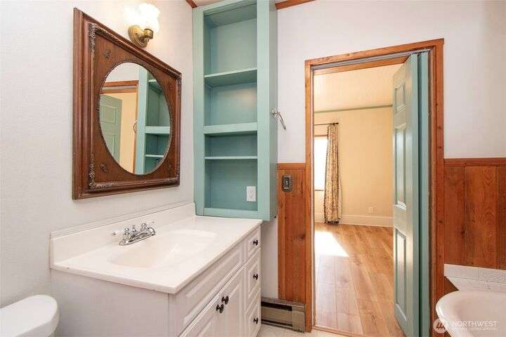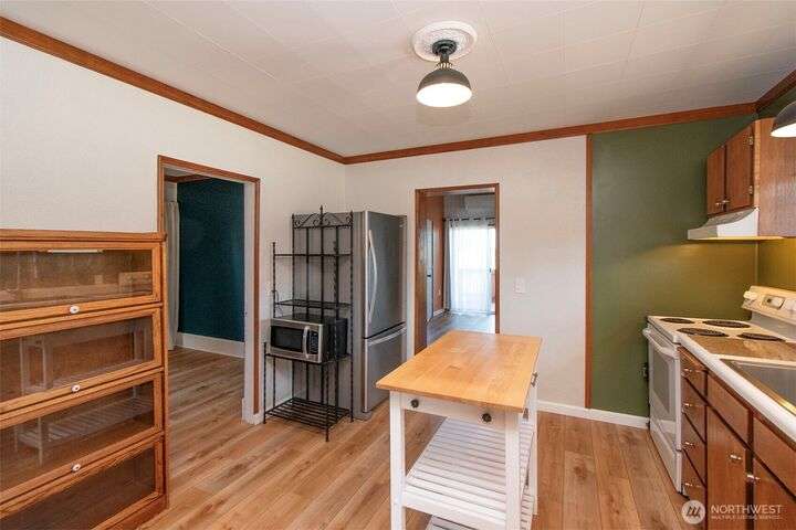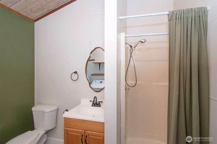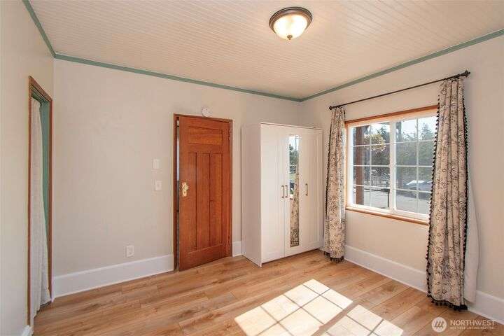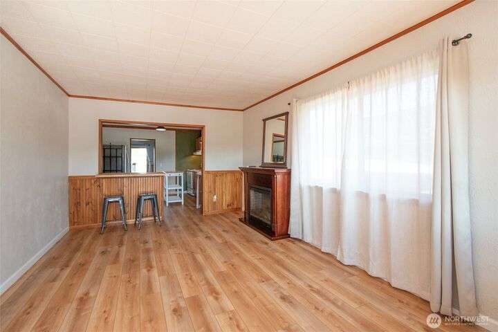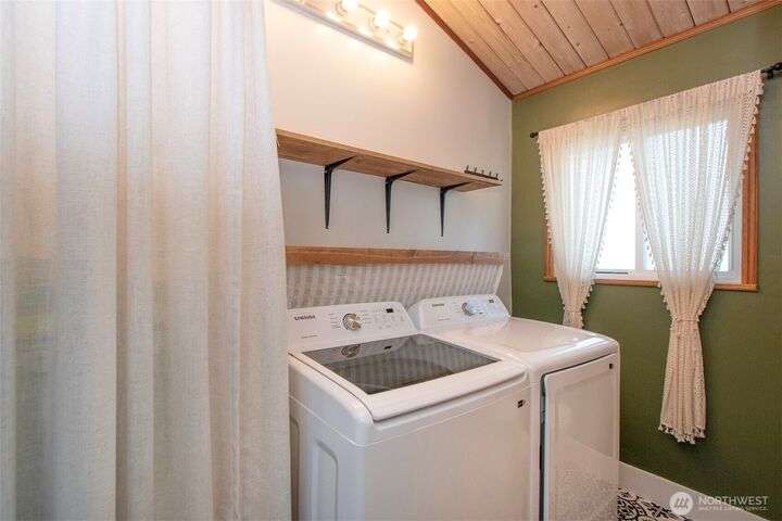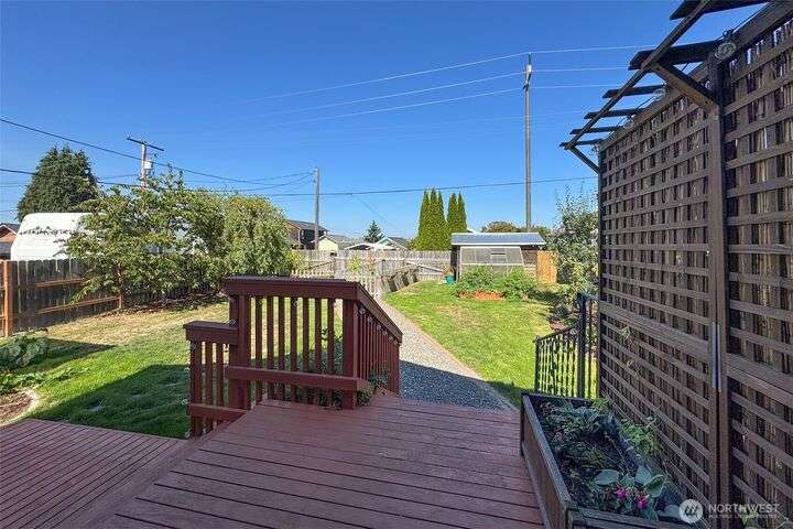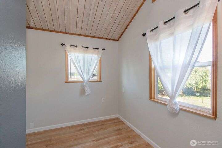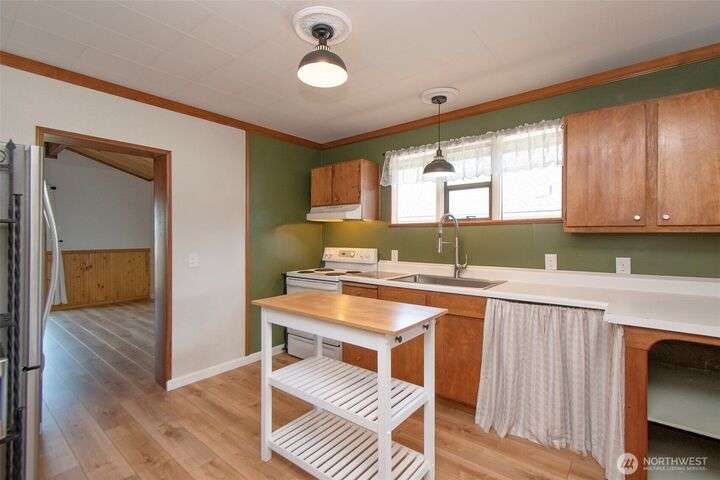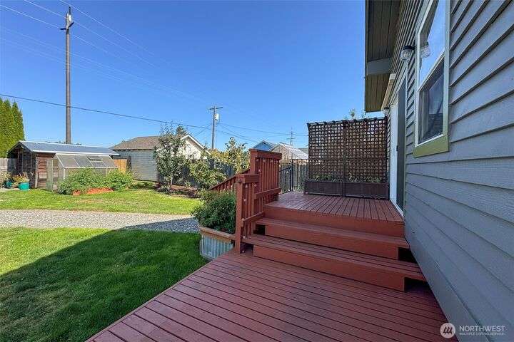 Adorable 3 BD/1 3/4 BA cottage situated on a hill looking out over the green space of Shane Park with climbing gym and baseball diamonds and the Olympic Mountains rising majestically in the background. Newer wood flooring throughout the home with an electric fireplace in the living room. A claw foot tub adds vintage touch to bathroom. The kitchen has a breakfast bar and center island. The front porch overlooks the park and mountains. There is a picket fenced garden, greenhouse, shed, chicken coop, fruit trees and a gazebo among the flowers for outdoor dining in the back yard.