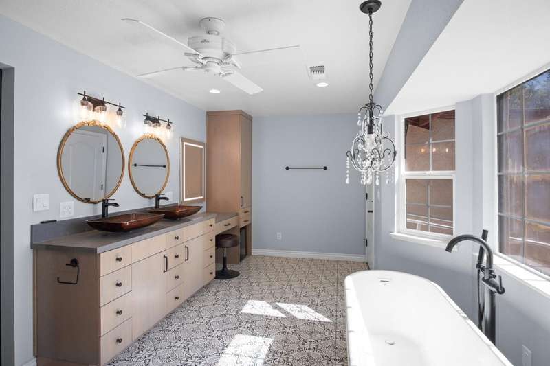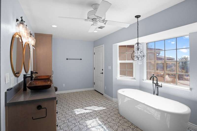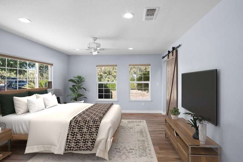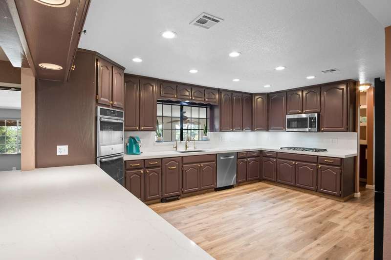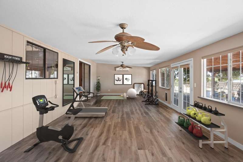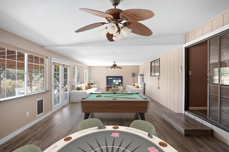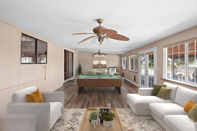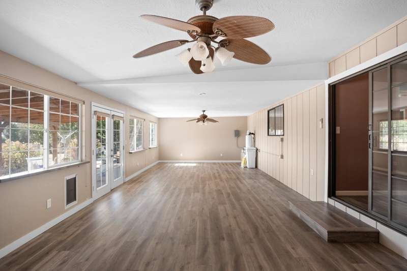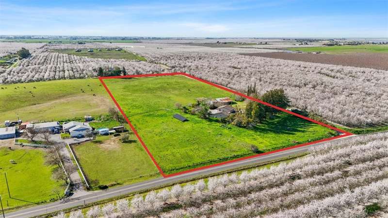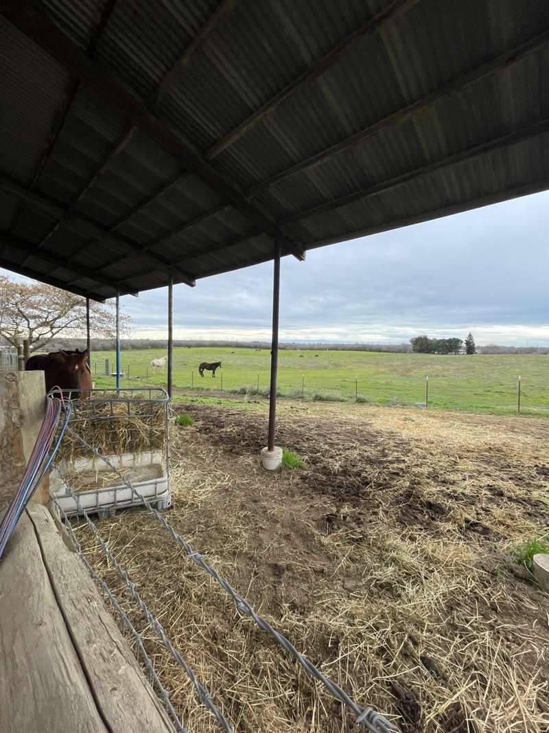 Tranquil 10 acre Ranch with beautiful updated 4 bedroom 3.5 bath home. New Beautiful Primary Large Master suite and bath on ground floor, complete with double sinks, soaking tub, large shower, along with heated towel rack. Upstairs has a 2nd Master/primary suite, along with 2 other bedrooms. This home has been remodeled. New carpet, laminate flooring, kitchen and paint through out and a new roof. Duel HVAC system one separate for master suite Split wall HVAC unit in recreation rm. Whole house water softener. Pool approximately 4 years new, with new glass bead filter system 1 year ago. Home has tank-less water heater. New large covered patio. Lots of secure storage, 2 twenty foot storage containers. Covered pole barn with two small livestock pens and parking for up to 4 vehicles or farm equipment. RV parking with water, electric and sewer hook-up. seller owned Solar was added 1 year ago. Upgraded PGE meter that services the pool filter and well pump. So many things to list. Home is 2752, with enclosed room that is 600sf, to make it total 3352 SF of living space is great for hobby room, work out room, game room, pool room, etc. So many things to see.. Only a few miles to downtown Oakdale.