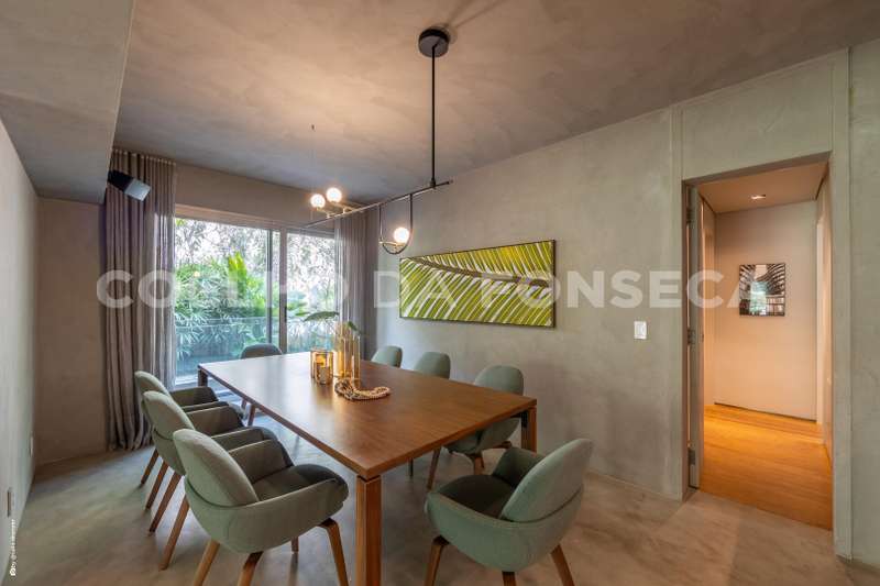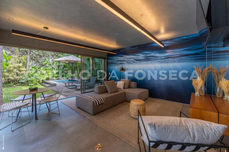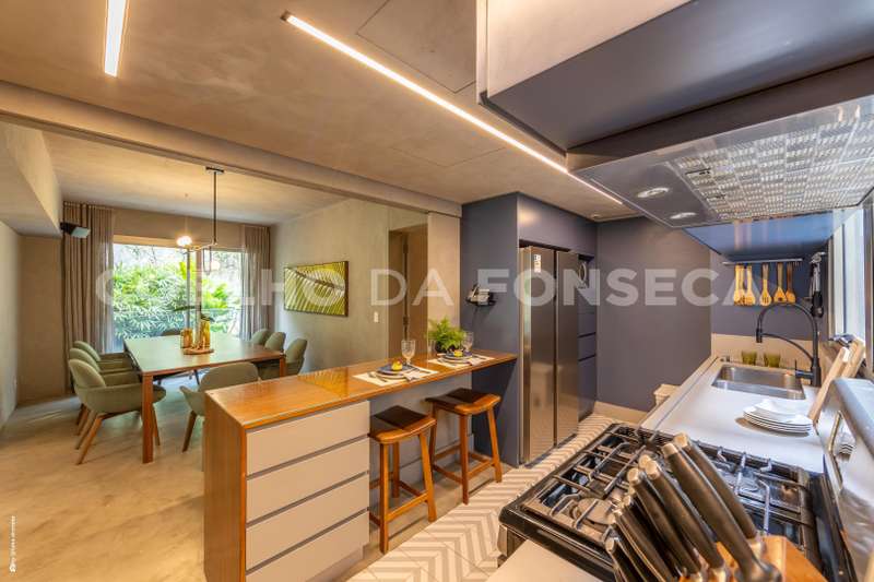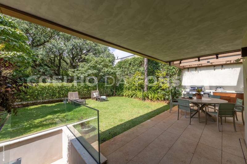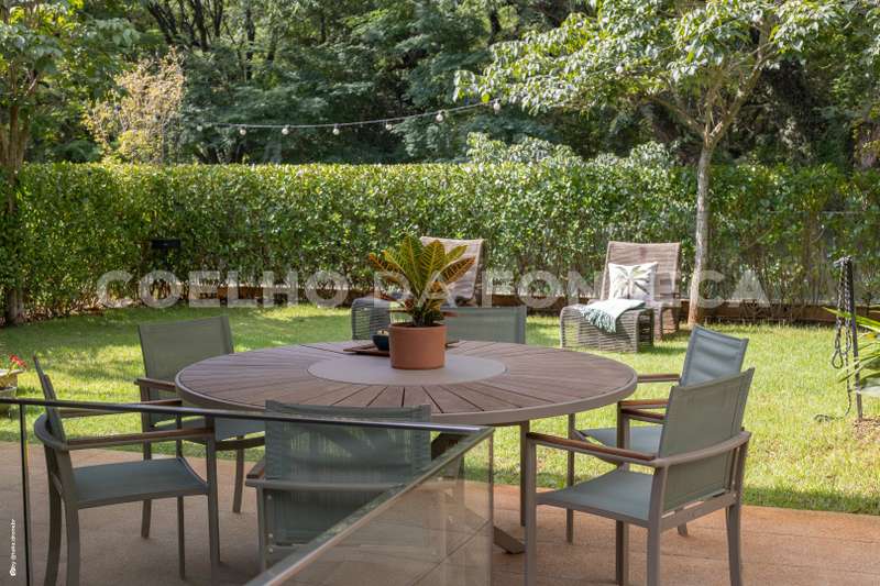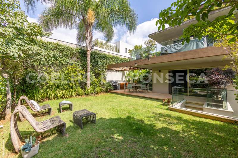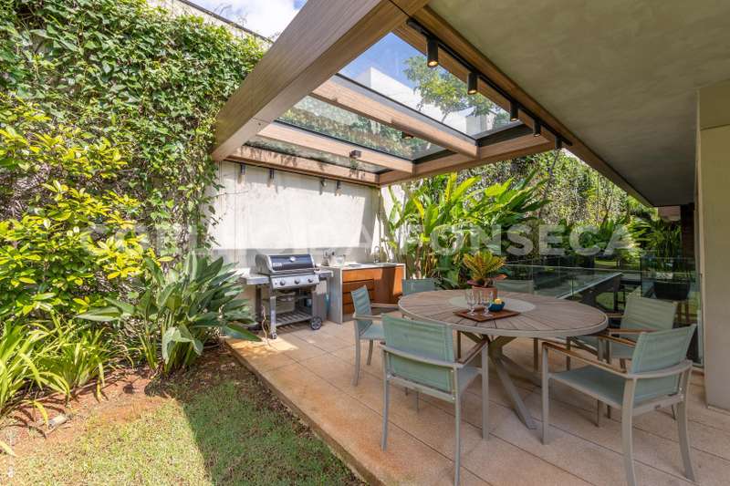 Com 628 m² de área útil, essa townhouse duplex garden conta com 3 suites, 4 vagas de garagem, elevador, jardim frontal com pergolado,living com bar, cozinha com painel para abertura total para sala, sala de jantar com mesa para 8 pessoas, sala de almoço com mesa para 6 pessoas, ampla academia com banheiro, lounge de TV, espaço gourmet, jardim dos fundos dá acesso a piscina e spa