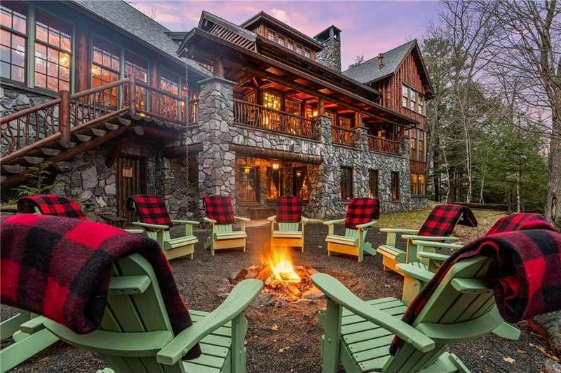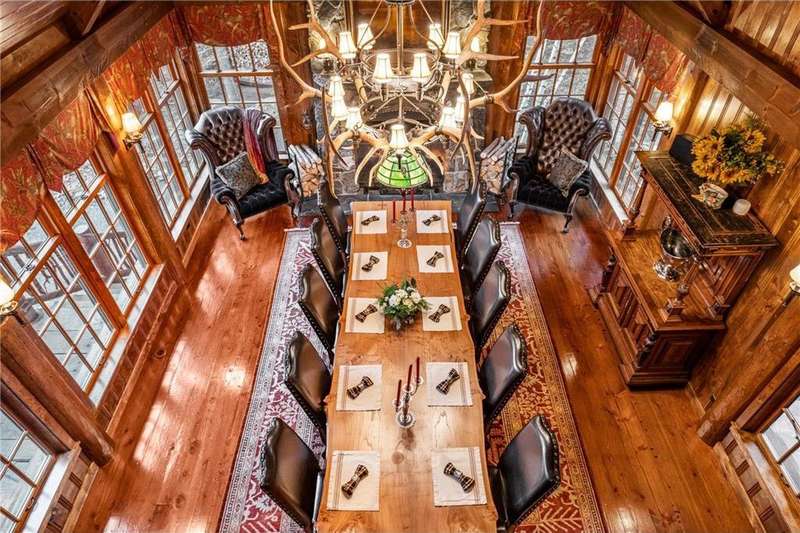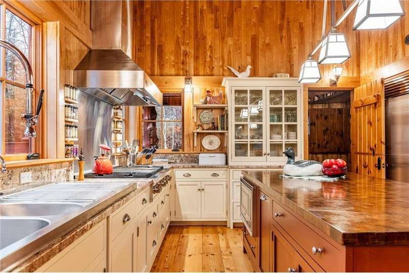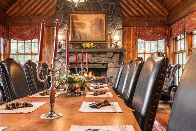 A masterpiece of timeless craftsmanship and serene natural beauty, Birch Point Lodge is an exceptional legacy estate nestled on over 39 acres of pristine Northwoods wilderness. With 2,000+ feet of shoreline, two islands, and both sunrise and sunset views over crystal clear water, this secluded haven offers unparalleled privacy and connection to nature. The lodge’s Great Hall evokes the spirit of grand Adirondack and National Park lodges—anchored by a soaring native Wisconsin granite fireplace, reclaimed wide-plank floors, and majestic log trusses beneath 25-foot ceilings. Thoughtful touches abound, from a built-in whiskey bar and nostalgic phone booth to custom cedar railings and antler chandeliers. The grand Dining Hall is wrapped in Marvin windows offering lake and forest views, centered around a bold timber frame and a handcrafted chandelier by blacksmith Dan Nauman. Custom birch paneling, reclaimed red pine floors, and a granite Rumsford fireplace bring warmth and elegance to every gathering. A chef’s kitchen pairs beauty with function: Sub-Zero and Viking appliances, a walnut-topped island, marble counters, and hand-forged lighting, all surrounded by windows and birch-paneled walls that blend the indoors with the forest beyond. Across its expansive layout, the home offers multiple porches, a cascading stone staircase, cantilevered timber stairway, and custom oak bookcases hewn from a tree once rooted on the land. Private bedroom suites feature reclaimed wood floors, birch built-ins, forest views, and stone-accented en-suite baths. A luxurious home spa includes a sauna, steam shower, and soaking tub overlooking the woods. The Lake Level offers a rustic family room with fireplace and inglenook, a game room, whimsical bunk room, copper-topped bar, wine cellar, home gym, and a lakeside changing room with marble showers and handcrafted lockers. From foundation to finish, Birch Point Lodge is a work of art—designed for gathering, grounded in nature, and built to last for generations. Experience the artistry. Embrace the serenity. Welcome home to Birch Point Lodge.