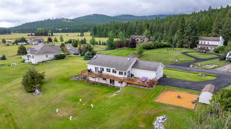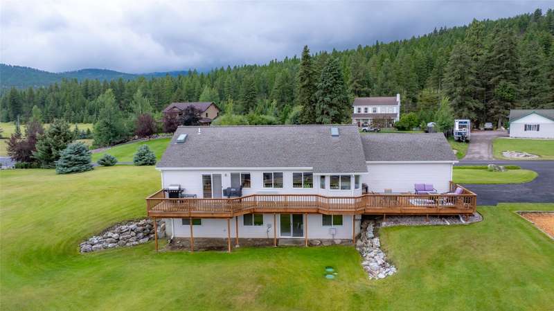 Discover your dream home at 106 Rainbow Drive! This stunning 4-bedroom, 3-bath residence offers peek a boo views of Foys Lake and is perfectly positioned within a short distance to Herron Park and Lone Pine State Park-ideal for outdoor enthusiasts. Enjoy a spacious, light-filled layout with open-concept living, perfect for entertaining or relaxing. Retreat to the generous primary suite with its own private bath, while additional bedrooms provide flexibility for guests, home office, or hobbies. Large walk out basement and additional storage space. Possibility of creating a wet bar for additional entertaining. Step outside to enjoy the massive backyard, fire pit area and storage shed. With quick access to hiking, biking, and water recreation, this home blends comfort, convenience, and Montana beauty. A rare opportunity in a highly desirable location!