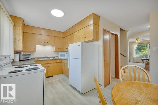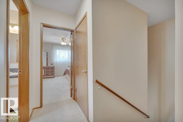 MINT CONDITION, ORIGINAL OWNER HALF DUPLEX FEATURING 3 BEDS UP PLUS A FULLY FINISHED BASEMENT AND A SINGLE DETACHED GARAGE! This 1218 sqft home is sure to impress with a bright main floor that features a large living room, half bath, storage and a kitchen with dinette. The second floor is home to 3 beds and a 4pce bath with the primary being plenty spacious. Make your way to the basement where you will find a large rec room, pantry/storage, another 3pce bath and a secondary kitchen/craft room. The fully fenced yard has a nice concrete patio, grassy area and is home to the oversized single garage. There is large front yard with mature blvd trees. Minutes to literally everything Edmonton has to offer plus easy public transportation. Newer windows, shingles, some plumbing and H2O tank. This is the perfect investment property or first time buyers!