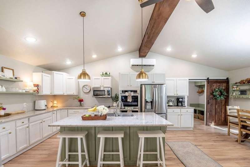 Seller is willing to Split Land. This AGENT owned property has 4+/- acres, 2321sqft, 2 bedroom/2 bathroom,700+sqft of heated/cooled flex space that could be converted to a bedroom. Textured metal roof, spray foam insulation, commercial grade mini-splits, and a wood burning stove! This all electric home features a 6' tub and custom tiled dual head shower with quartz countertops in both bathrooms. A deck overlooking the pond and woods, a porch swing patio view of the valley, a grill patio for entertaining, and 1ac parceled piece of land with power and water for additional fun or investments. Reference other listing 13272783 for more land