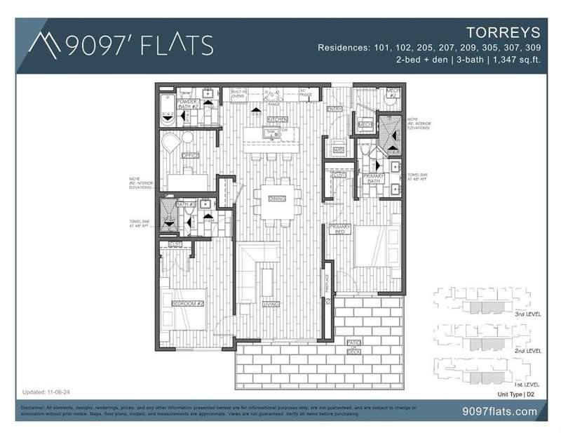Now offering a limited developer incentive-18 months of HOA dues paid for the next three buyers at 9097 Flats. This unit is a 2-bed + den. Resting at the base of Mount Royal in the high-mountain enclave of Frisco, Colorado, 9097' Flats provides Summit County with its most stylish and thoughtfully-appointed residences yet. These condominiums provide owners with spacious homes in an unbeatable location steps from vibrant Main Street shops and minutes from world-class mountain resorts. The building offers top-tier finishes and amenities that exude understated fashion, style, comfort and connection to nature next door. Sunrise finish package. Interior photos are of a similar unit, furnished photos are from our furnished model unit 305. Units are sold unfurnished.