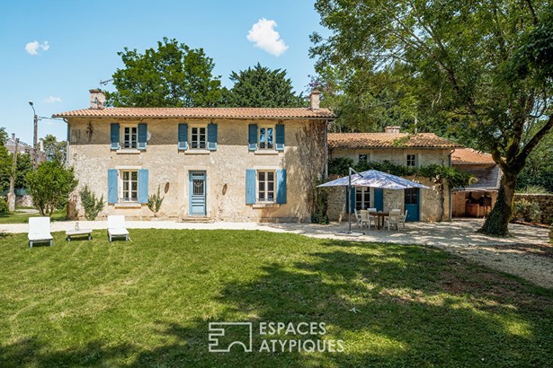 Located 18 km from Niort, in a charming village with grocery store and schools, this typical property of the region has managed to combine, with so much contrast and marriage, the elegance of the old with modern materials.